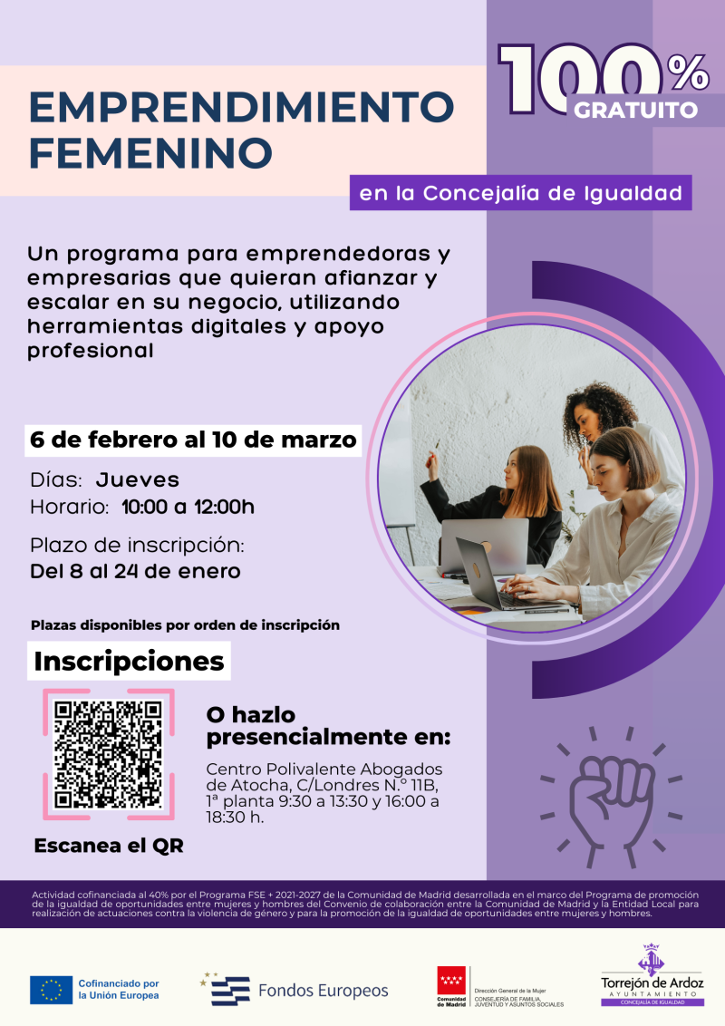 Programa de dinamización del pequeño comercio y apoyo al emprendimiento femenino: Tiene como objetivo proporcionar a las mujeres empresarias y emprendedoras formación, motivación y recursos para promocionar sus negocios, buscar alternativas creativas a las dificultades, encontrar nuevos canales de distribución de sus productos y servicios, dinamización de todo su potencial y todo, mediante el trabajo grupal presencial y mediante las nuevas tecnologías.