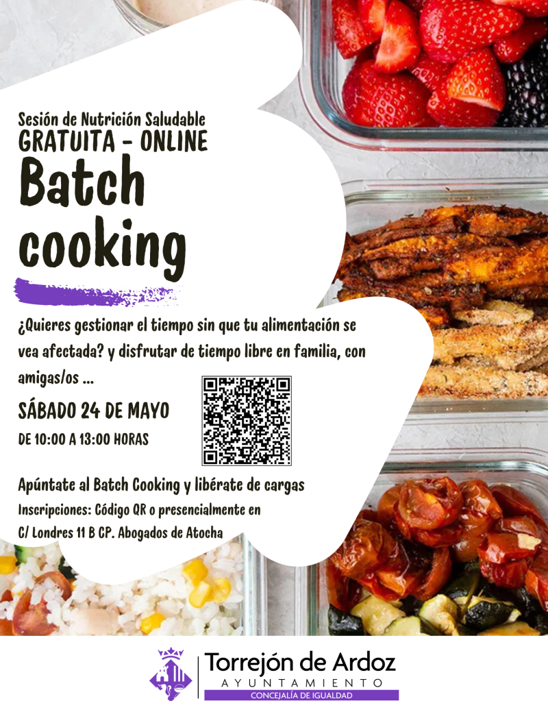 NUTRICIÓN SALUDABLE. APÚNTATE AL BATCH COOKING Y LIBÉRATE DE CARGAS. Jornada ON-LINE para población en general.