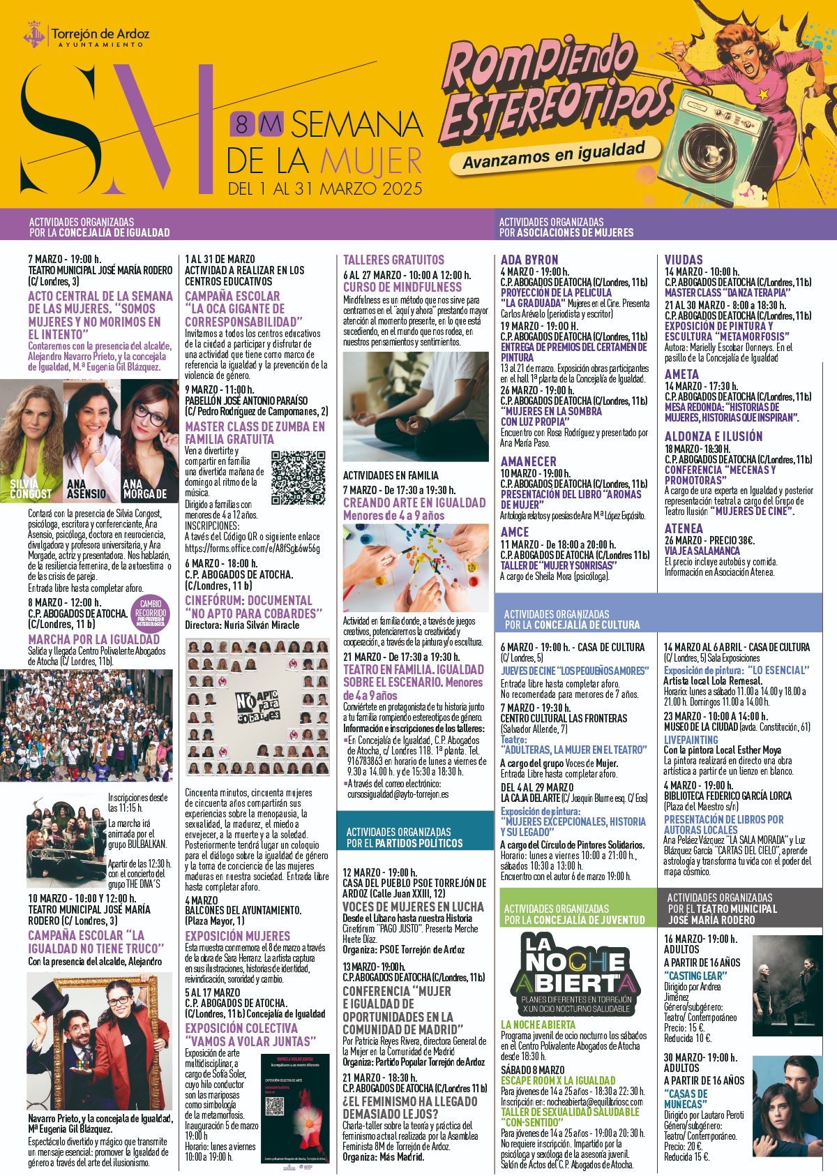 Programa de actuaciones en el mes de marzo cuyo objetivo es la promoción de la igualdad entre mujeres y hombres en los diferentes ámbitos sociales: la literatura, el deporte, el cine, la música, la conciliación, los cuentos, las emociones… cada año se aborda un tema en el que trabajar propuestas para la igualdad.