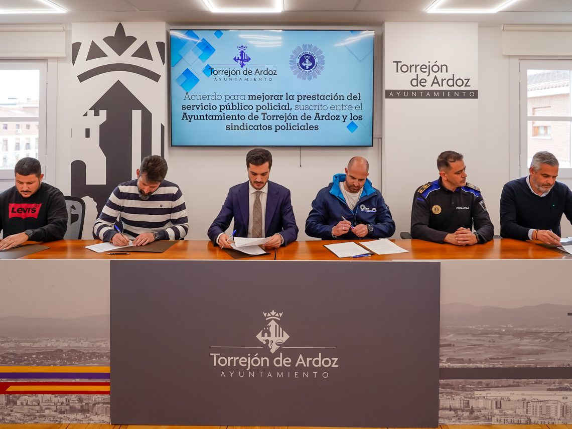 Recientemente hemos aprobado el Acuerdo para mejorar la prestación del servicio público policial, suscrito entre el Ayuntamiento de Torrejón de Ardoz y los tres sindicatos policiales.