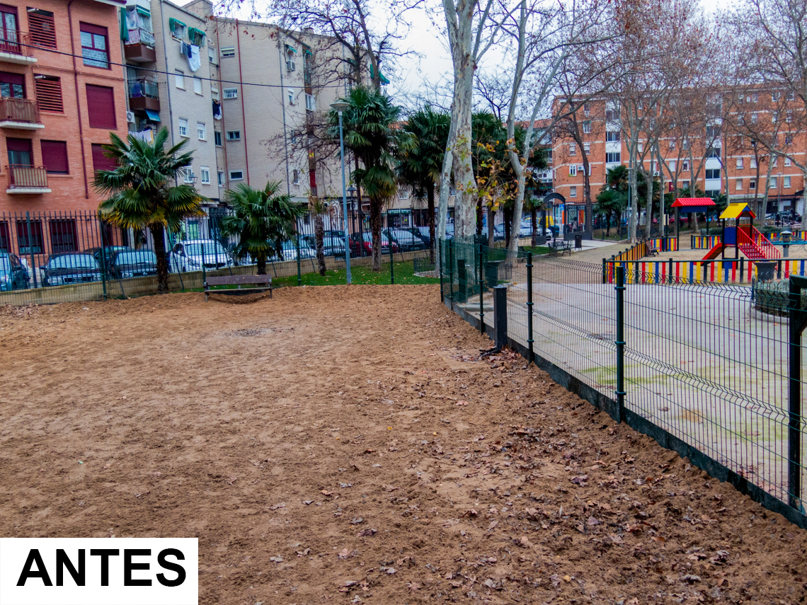 • Se han pavimentado zonas del parque para que sea transitable en caso de lluvia y eliminado el área canina que había en el parque por las molestias de olores que producía a las viviendas que, en este caso, están muy próximas y al existir otra área canina a escasos 200 metros. Además, se ha instalado una nueva fuente de agua potable antivandálica, entre otras inversiones