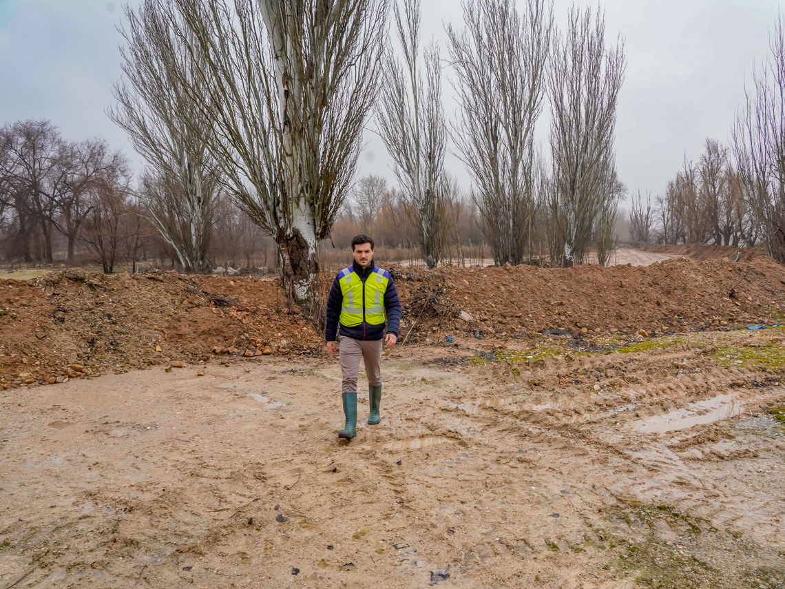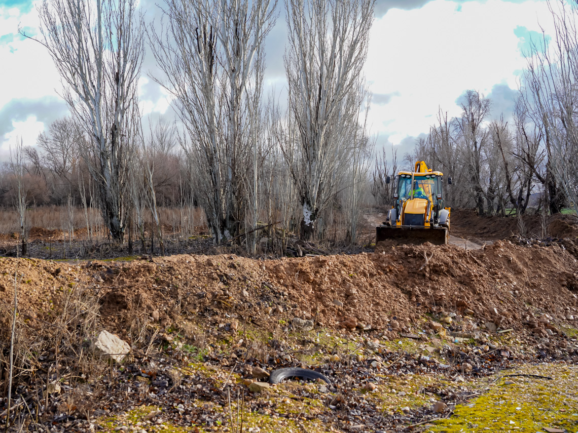 Torrejón de Ardoz, 12 de febrero de 2026. Se trata de un dique de tierra de 300 metros de longitud de una altura que oscila entre 1 metro y 1 metro y medio y se ha construido perpendicular al río Henares. Esta infraestructura no ha tenido coste alguno porque se ha creado con medios propios del Ayuntamiento de Torrejón.