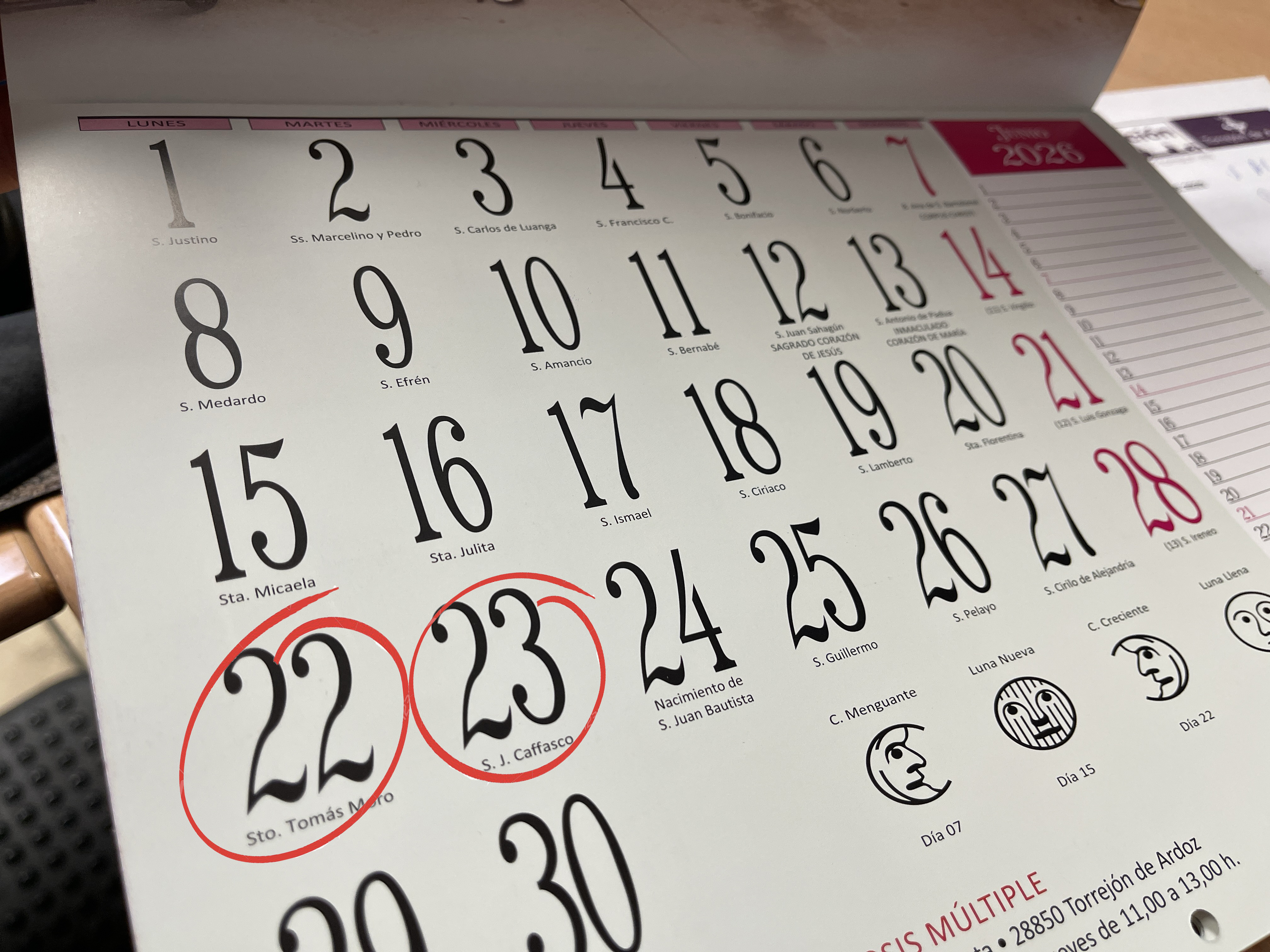 • 23 junio (martes), Fiesta local.