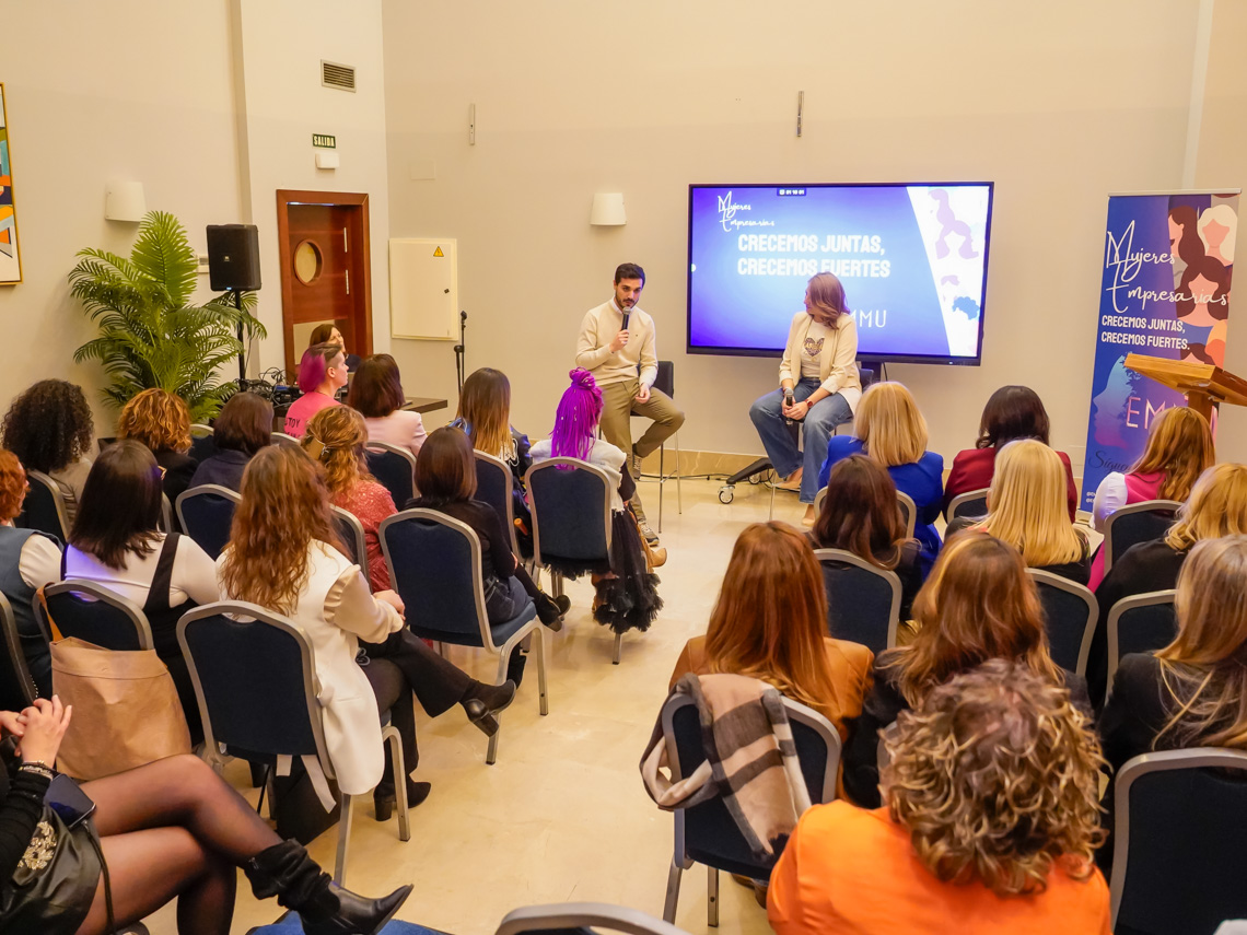 Uno de los momentos más inspiradores de la jornada fue la intervención de la Coach Beatriz Heredero, quien ofreció una charla motivacional que resonó profundamente entre las asistentes, reforzando la importancia del cuidado personal para el crecimiento profesional. El evento también contó con una mesa redonda moderada por Beatriz Díaz, secretaria de la asociación, en la que integrantes de EMMU compartieron sus experiencias dentro del grupo, destacando la importancia del apoyo mutuo y la colaboración en el desarrollo de sus proyectos.