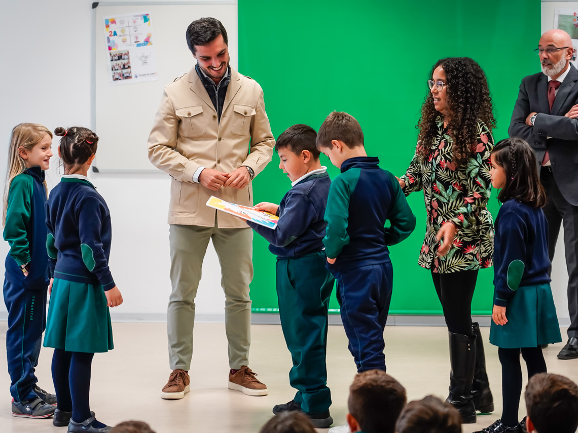 El alcalde, Alejandro Navarro Prieto, y el concejal de Educación, Bienestar e Inmigración, Rubén Martínez, ha visitado esta mañana el colegio Humanitas. Acompañados por su director, Vicente Mangas, el regidor torrejonero y el edil han conocido de primera mano el proyecto “Creamos nuestro propio partido político”, realizado por los alumnos de 2º de Primaria desde las áreas de Ciencias Sociales y Lengua Castellana. A través de este programa, los estudiantes han trabajado en equipo, creando sus propios partidos políticos con propuestas concretas y una visión crítica sobre la sociedad que los rodea. La iniciativa les ha dado la oportunidad de comprender los mecanismos de la democracia, el sistema electoral y la importancia de la participación ciudadana.