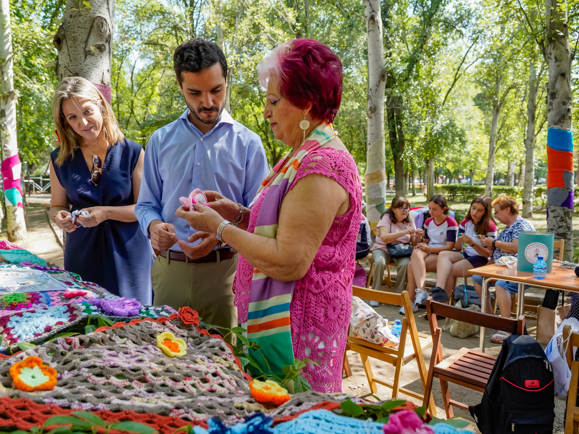 • Como novedad este año, coincidiendo con el Día Internacional de Tejer en Público, se ha celebrado una entrañable actividad intergeneracional en la que han participado las tejedoras del Centro de Mayores Veredillas, los alumnos de la ESO del colegio JABY de Torrejón de Ardoz y miembros de la Asociación IAIA, una entidad formada por tejedoras y tejedores que destinan sus obras a colectivos vulnerables o desfavorecidos. Juntos, mayores, jóvenes y voluntarios han tejido en comunidad en un acto simbólico cargado de solidaridad, creatividad y cooperación entre generaciones