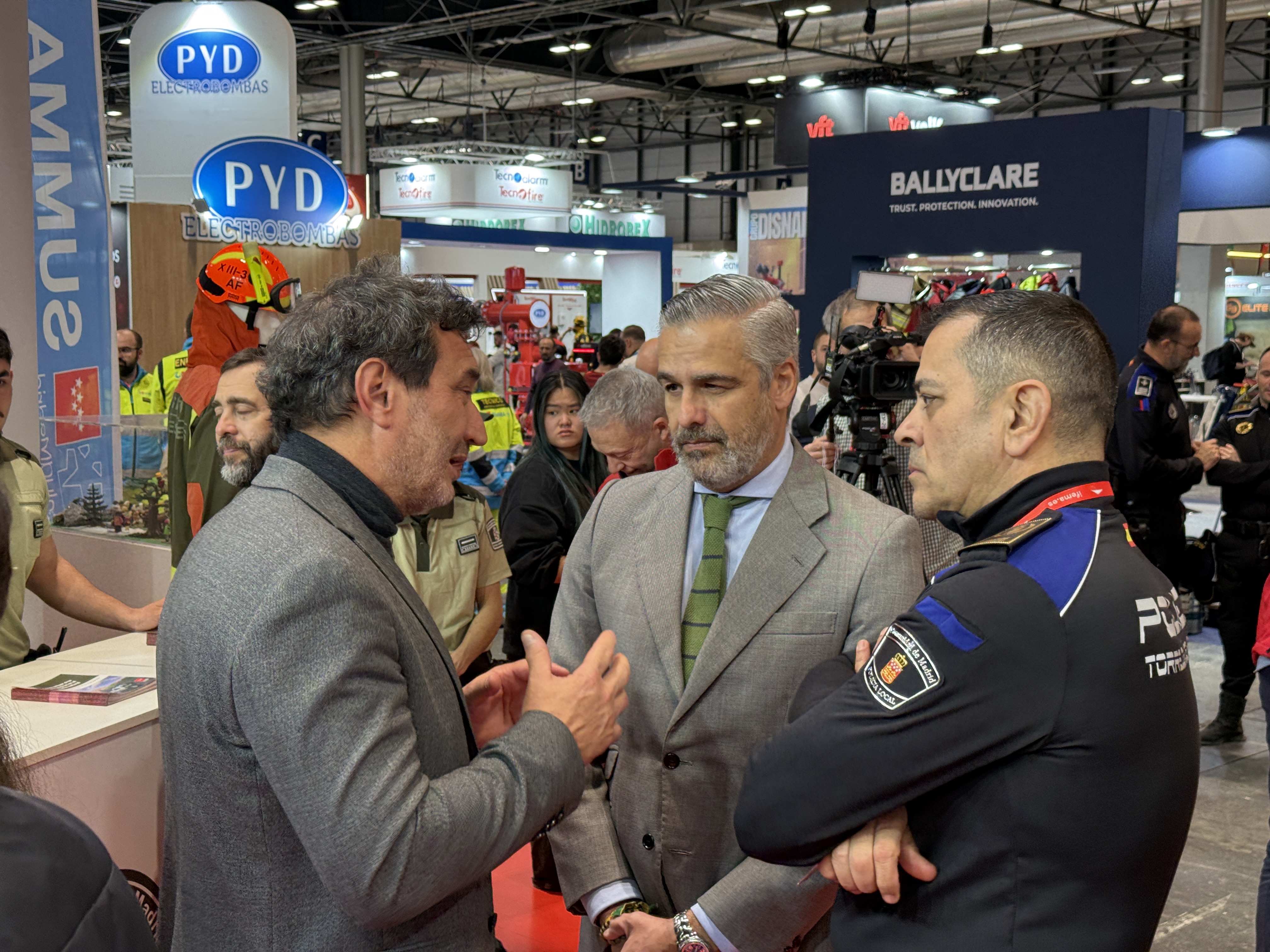 Torrejón de Ardoz, 25 de febrero de 2026. El regidor torrejonero visitó el stand de la Agencia de Seguridad y Emergencias Madrid 112 con la que recientemente Ayuntamiento de Torrejón de Ardoz ha firmado el convenio que integra la operativa de la Policía Local del Centro de Coordinación Municipal (CECOM) en esta agencia lo que mejora la eficacia ante incidencias y emergencias. En este stand, el regidor torrejonero, departió con Carlos Novillo, consejero de Medio Ambiente, Agricultura e Interior y Pedro Antonio Ruiz, director General de la Agencia de Seguridad y Emergencias Madrid 112.