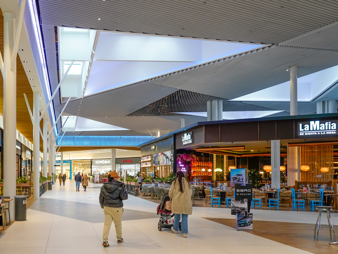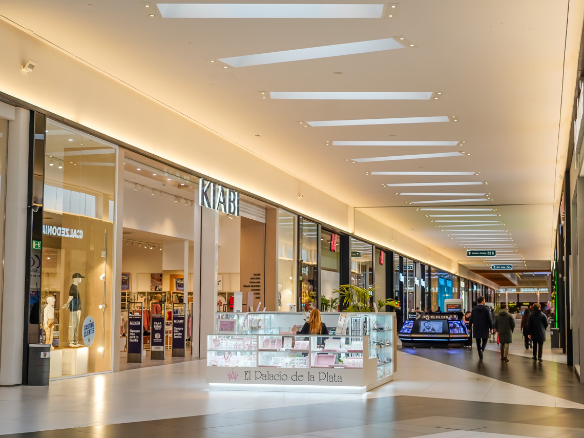 • La sostenibilidad ha sido un criterio prioritario en la renovación de la zona de ocio y restauración. Para maximizar la eficiencia energética, se han incorporado grandes lucernarios que permiten la entrada de luz natural a las zonas comunes, reduciendo así la dependencia de la iluminación artificial, la cual, además, es completamente LED de última generación. También se han implementado avanzadas soluciones tecnológicas, como un sistema de gestión BMS con sensores, para controlar y optimizar el uso de la iluminación y la climatización del centro