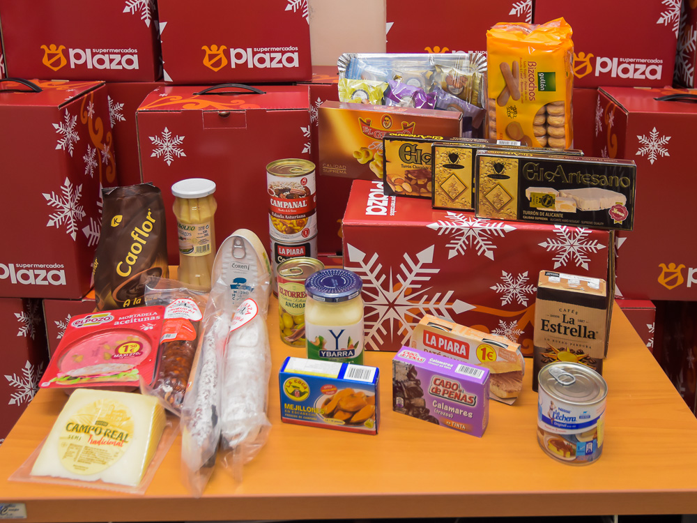• Unas cestas que están compuestas por un surtido de género navideño, además de café, cacao, leche condensada, bizcochos, un tarro de espárragos, un bote de mahonesa, una barra de fuet y otra de chorizo y salchichón, una lata de magro de cerdo, un bote de fabada, fiambres, queso, una lata de mejillones, salchichas, aceitunas, calamares y paté de pescado. Asimismo, se les ha entregado 100 paquetes de puré de patata, 400 kilos de azúcar, 400 kilos de harina, 400 cajas de porciones de quesitos y 100 botes de cacao soluble
