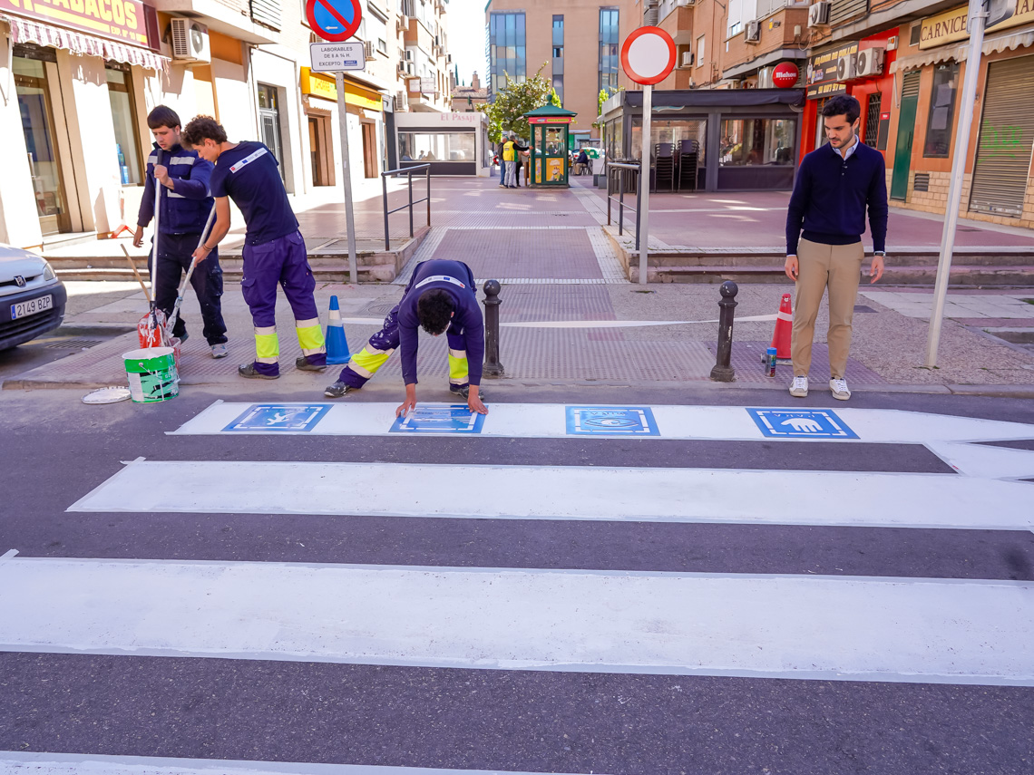 El Ayuntamiento está rotulando los pasos de peatones situados en el entorno de los accesos a todos los centros educativos de Torrejón de Ardoz con pictogramas dirigidos, principalmente, a personas con Trastorno del Espectro Autista