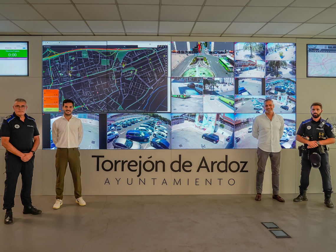 El Ayuntamiento de Torrejón de Ardoz ha realizado una gran inversión en sistemas tecnológicos de seguridad, mejorando con tecnología pionera el Centro de Control de la Policía Local para que sigan contribuyendo a que Torrejón de Ardoz sea una de las ciudades más seguras de la Comunidad de Madrid y de España. Entre otras mejoras, se ha actualizado el gran Videowall de 4x3 metros y se han incrementado un 125% las cámaras de videovigilancia y tráfico con un total de 389 dispositivos de alta definición y visión 360º.