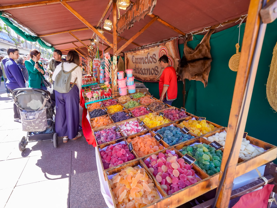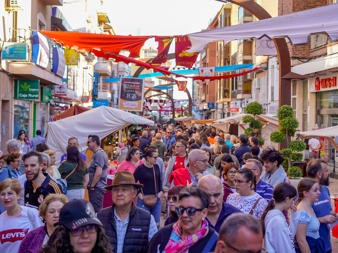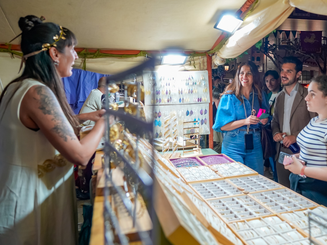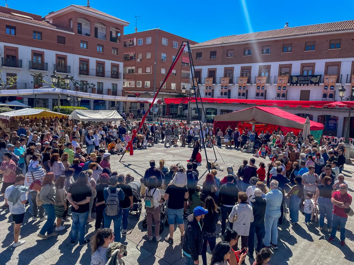 Torrejón de Ardoz, 30 de abril de 2025. Torrejón de Ardoz se engalanó para convertir el centro de la ciudad en una auténtica villa romana. En total fueron más de 7.000 metros cuadrados de mercado con calles llenas de vida, puestos con artesanías y sabores tradicionales y personajes vestidos con trajes de la época. Además, para lograr la máxima ambientación posible en esta época, se decoraron con diferentes estandartes y adornos los balcones de la Plaza Mayor y de las calles aledañas.