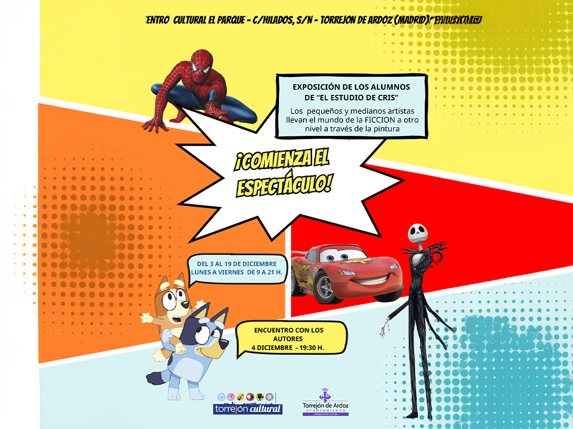 Torrejón de Ardoz, 18 de diciembre de 2024. También, en el Centro Cultural El Parque, hoy y mañana de 9:00 a 21:00 horas, aún se podrá disfrutar de la exposición de los alumnos de “El estudio de Cris”, en la que los pequeños y medianos artistas llevan el mundo de la ficción a otro nivel, a través de la pintura.