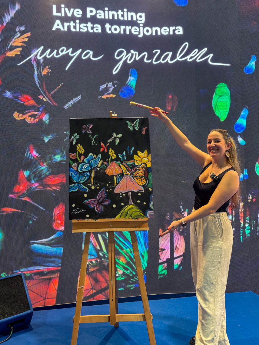 En el stand de Torrejón hubo degustaciones de las magníficas palmeras de chocolate de Torrejón de Ardoz, a cargo de la Pastelería Migas y sus maestros pasteleros, Adrián Campos García y Manuel Campos Baquero. Además, Live Painting de Esther, una artista local que creó en directo una obra inspirada en Mágicas, bailes del Ángel Navideño Raguel de la comparsa de Gigantes y Cabezudos, Cuentacuentos Navideño para todas las edades a cargo de David Moreno, periodista, cantante, escritor y presentador de televisión del canal infantil Boing, pintacaras temático con motivos navideño y actuación de los artistas locales del dueto musical Casi Perfectos.