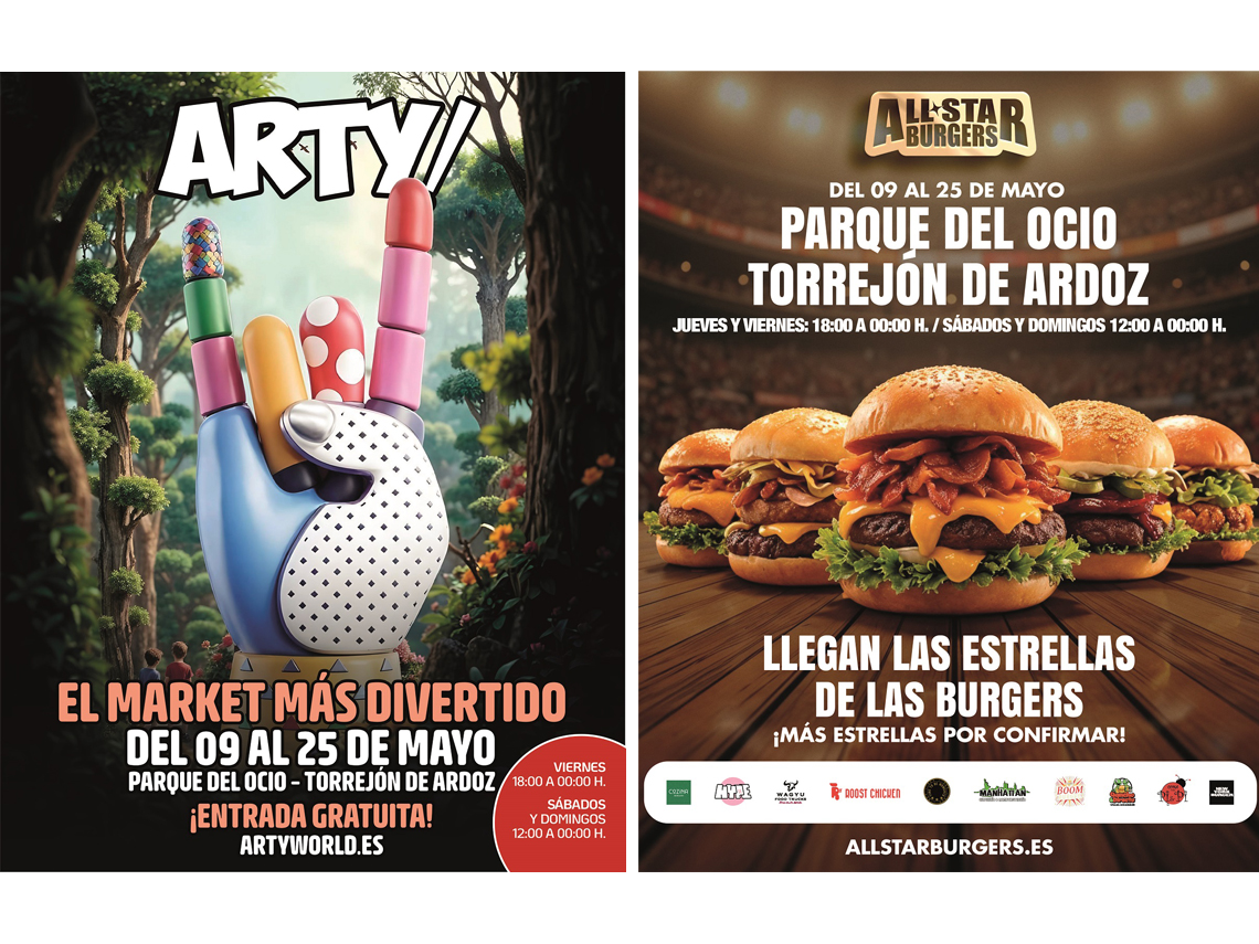 Hoy, viernes, 9 de mayo, llegan a Torrejón de Ardoz Arty! World, el market más divertido y espectacular y “All Star Burgers”, un festival gastronómico dedicado a las hamburguesas gourmet