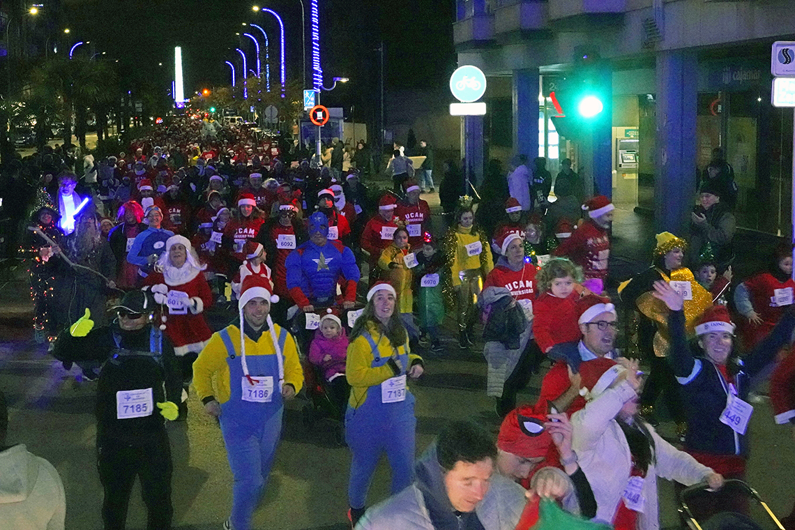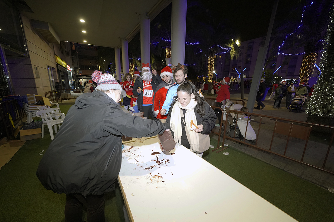 • La iniciativa constó de dos modalidades bien diferenciadas. Por un lado, estuvo la prueba no competitiva para todas las edades, en la que los participantes iban disfrazados. Antes, se disputó la carrera oficial en las categorías promesas, senior y máster, tanto en masculino como femenino. Además, todos los participantes disfrutaron de un chocolate con churros y se les regaló un gorro de Navidad y una camiseta