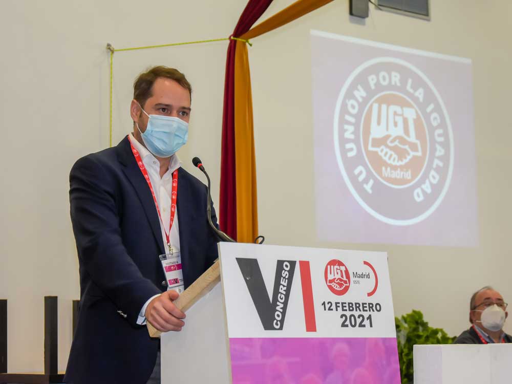 El alcalde de Torrejón de Ardoz, Ignacio Vázquez, ha acudido esta mañana al VI Congreso de la Unión Comarcal Este UGT-Madrid, que ha reunido a 35 delegados en representación de los trabajadores afiliados. La cita ha tenido lugar en La Caja del Arte y también ha contado con la presencia del secretario general de UGT, Jesús La Roda, y la secretaria de Organización de UGT Madrid, Rosa Moreno, así como representantes del sindicato de los centros de trabajo y empresas ubicadas, además de en la localidad torrejonera, en Alcalá de Henares, Coslada, San Fernando de Henares, Daganzo, Mejorada del Campo, Ajalvir o Meco, entre otras. Durante su transcurso, el primer edil destacó que el actual Gobierno local cree firmemente en la importancia de los agentes sociales y, sin duda, en los representantes de los trabajadores. Por ello, siempre ha abordado el problema del desempleo desde antes del inicio de la pandemia, impulsando iniciativas en las que cuentan con los agentes sociales.