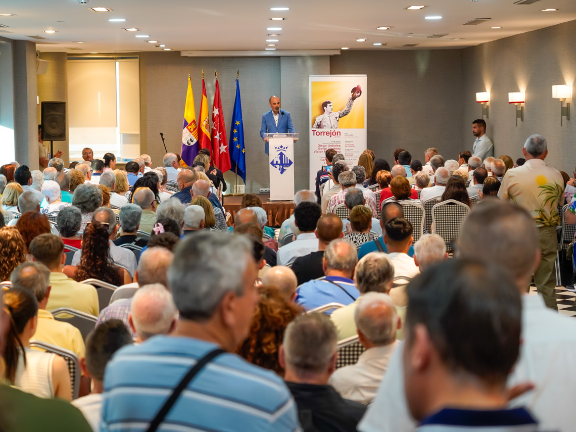 Torrejón de Ardoz, 4 de junio 2025. Se ha presentado el cartel taurino en un evento organizado por la empresa concesionaria de los festejos, Lances de Futuro. La presentación realizada por el periodista taurino José María Vivas, se llevó a cabo en el Hotel Asset de Torrejón ante numerosos aficionados y con la asistencia del alcalde, Alejandro Navarro, la concejala de Igualdad y Festejos, Maria Eugenia Gil, el empresario adjudicatario de la plaza, José María Garzón, y los diestros, Víctor Hernández y Fernando Adrián.