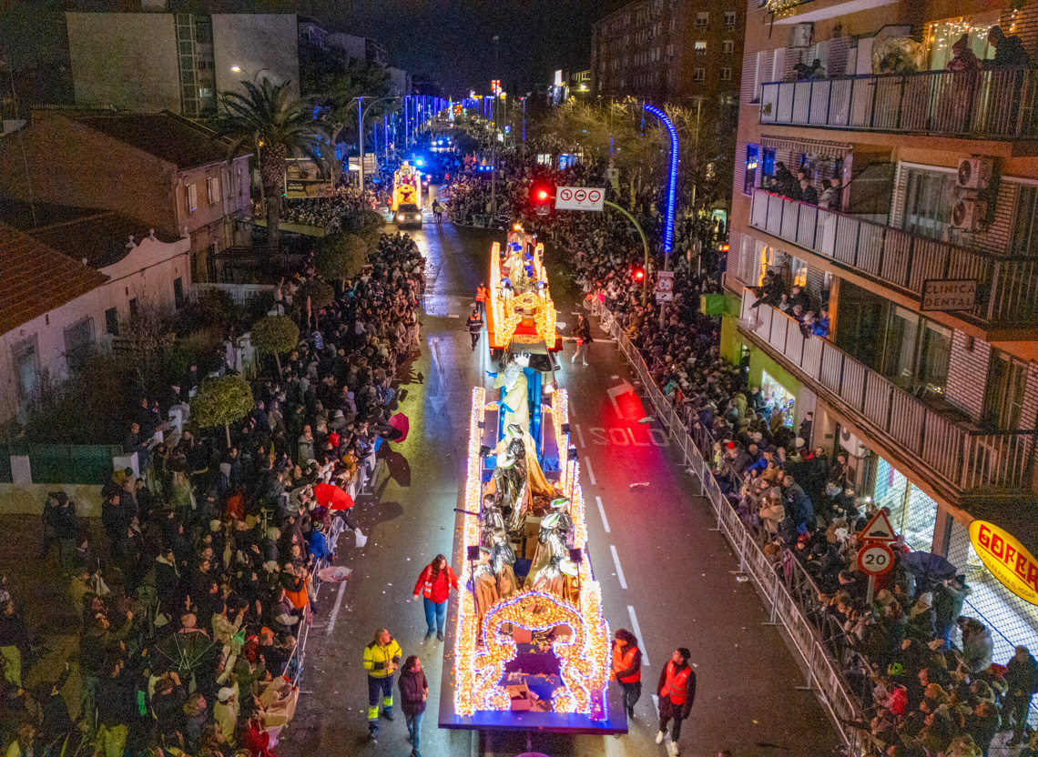 Los Reyes Magos, con su séquito, entre los que destacaba el conocido presentador televisivo, Joaquín Prat, como Emisario del Rey Melchor y el exjugador internacional de baloncesto torrejonero, José Antonio Paraíso como Emisario del Rey Gaspar recorrieron la avenida Constitución, finalizando en Plaza España, donde fueron recibidos por el alcalde y juntos saludaron a todos los allí presentes.