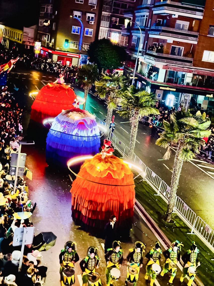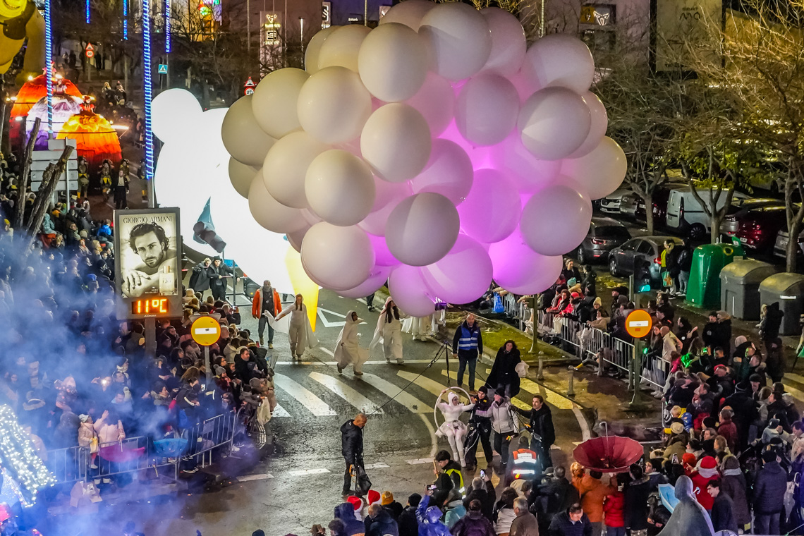 • Ante la dificultad que tenían los impresionantes globos de personajes infantiles de atravesar las calles estrechas que desembocan en la Plaza Mayor, el final de la Cabalgata se llevó a cabo en la Plaza de España con el saluda de los Reyes Magos y donde también tuvo lugar el Gran Espectáculo Final de Reyes