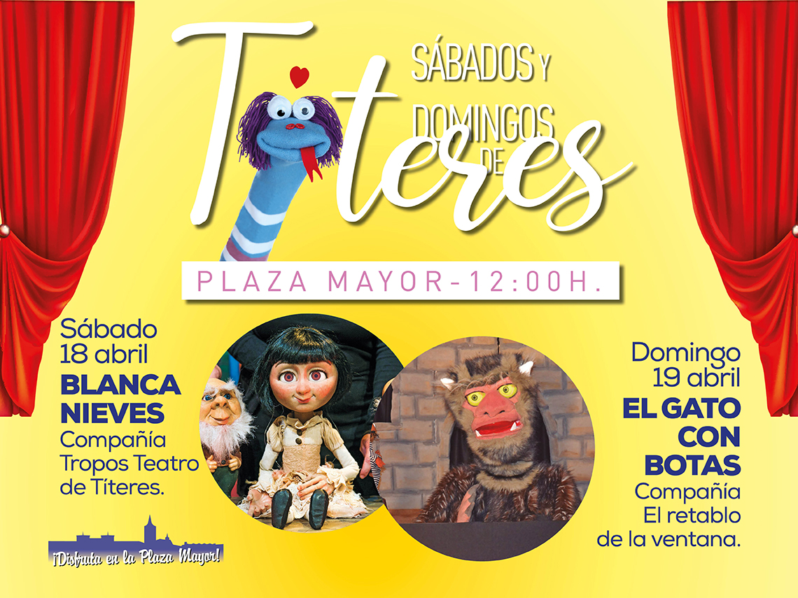 • Así, mañana sábado, 18 de abril, a las 12:00 horas tendrá lugar el espectáculo, “Blancanieves”, de la compañía Tropos Teatro de Títeres, mientras que el domingo, 19 de abril, será el turno de “El gato con botas”, de la Compañía El Retablo de la ventana