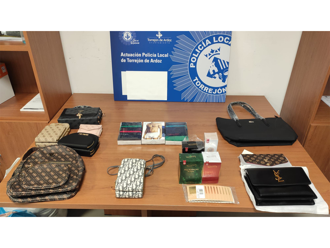 • La Policía Local de Torrejón de Ardoz ha llevado a cabo una actuación contra la venta ilegal de productos falsificados, interviniendo un vehículo que transportaba estos artículos para su comercialización. Durante un servicio ordinario de vigilancia, los agentes observaron como dos personas ofrecían desde el interior de un vehículo la venta de objetos a los transeúntes.