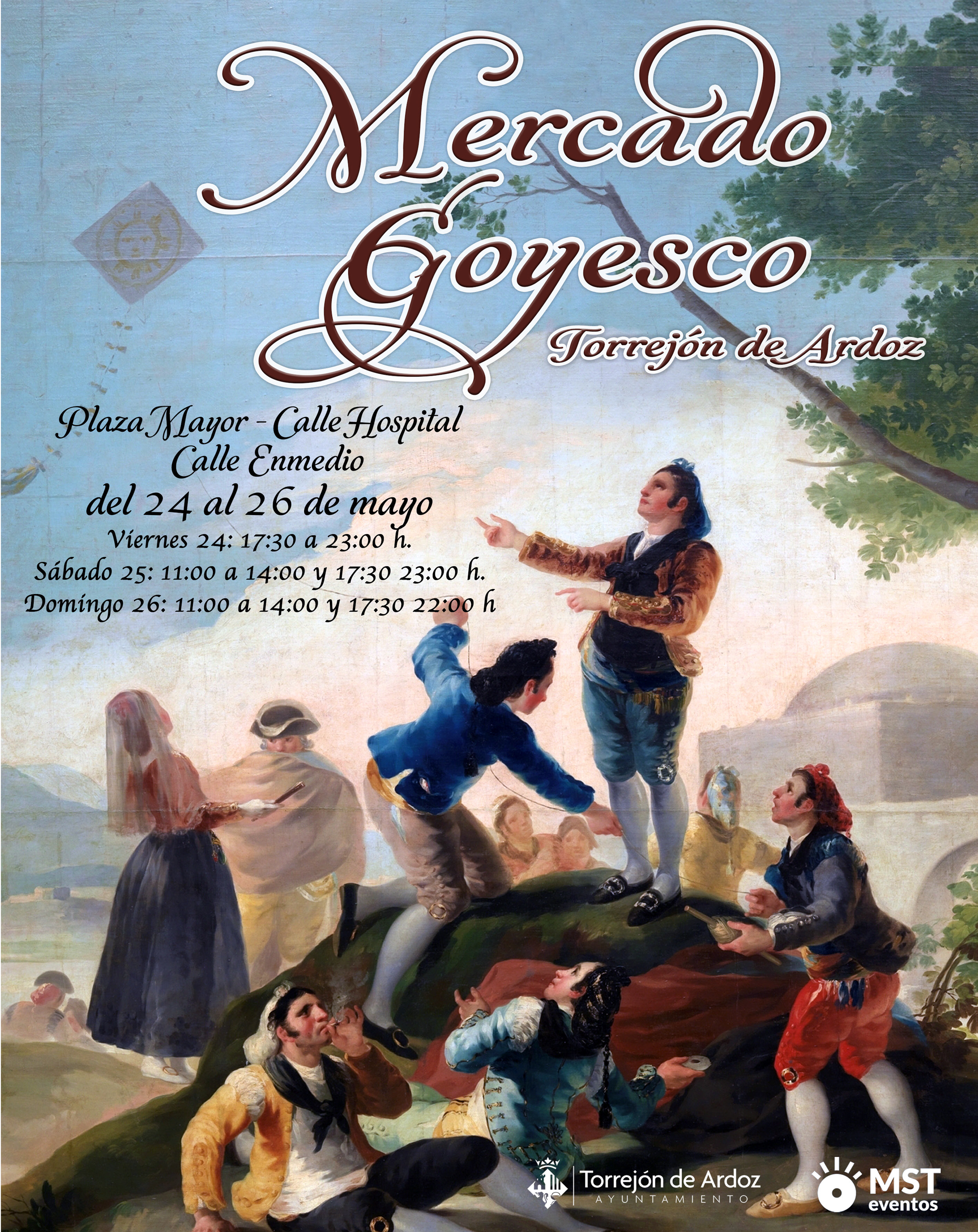 Torrejón de Ardoz retrocederá este fin de semana en el tiempo hasta la España de finales del siglo XVIII y principios del XIX con la celebración del Mercado Goyesco. Así, durante todo el fin de semana la Plaza Mayor y las calles Hospital y Enmedio se convertirán en un auténtico escenario goyesco, donde habrá más de 100 puestos que venderán alimentos, objetos y utensilios relacionados con esta época, como bisutería isabelina, artesanía, cerámica, calzado tradicional, cremas y jabones, libros en miniatura, un horno de pan, relojes de madera, velas o alimentos, entre otros muchos. También habrá una gran cantidad de actividades para grandes y pequeños con pasacalles, demostraciones de formación en combate, exhibición de cetrería, entre otras. La apertura del mercado tendrá lugar a las 17:30 horas y se prolongará hasta las 23:00 horas, mientras que mañana, sábado, el horario será de 11:00 a 14:00 horas y de 17:30 a 23:00 horas y el domingo de 11:00 a 14:00 horas y de 17:30 a 22:00 horas.