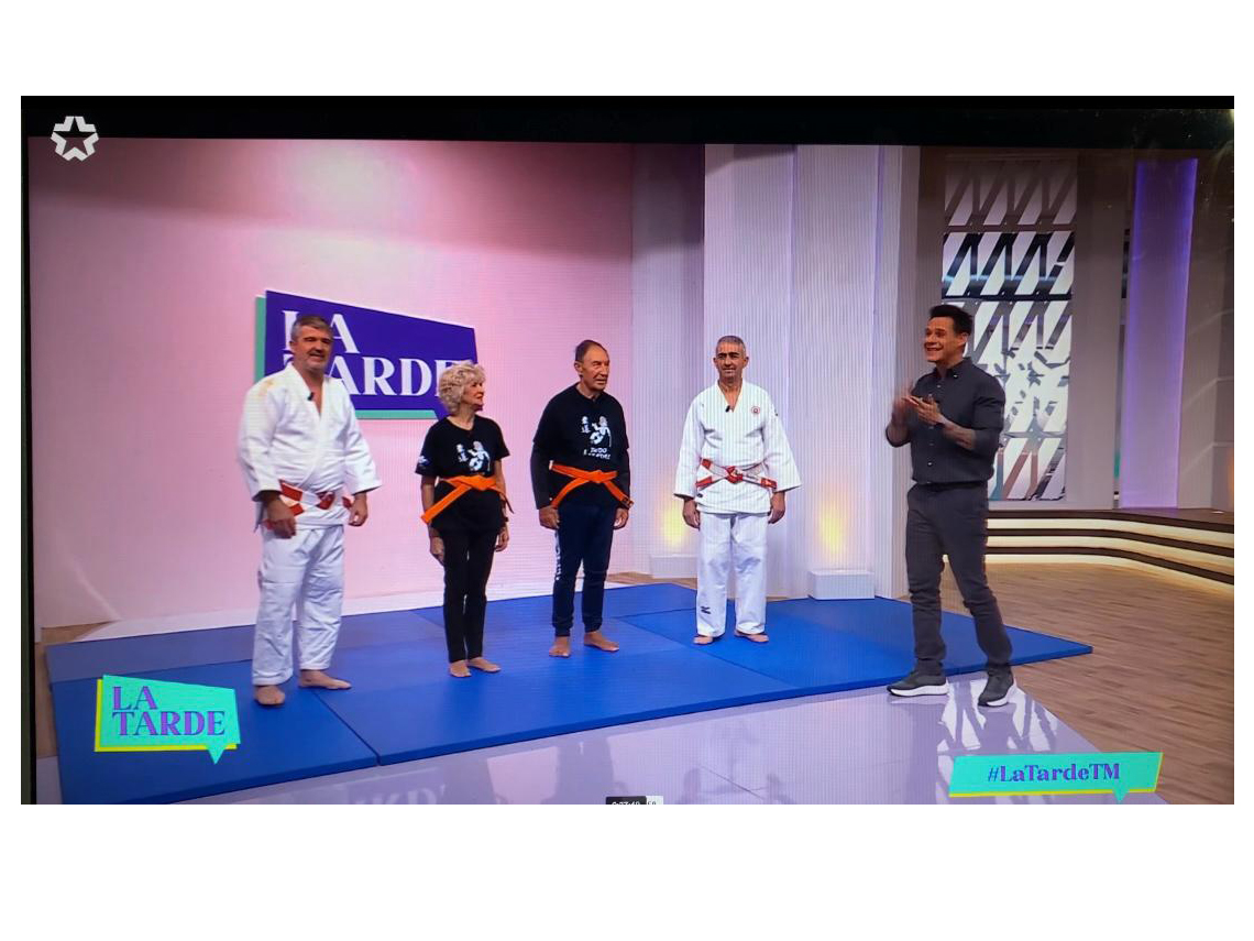 Los alumnos que participan en el proyecto de judo para mayores del Ayuntamiento de Torrejón de Ardoz protagonistas del programa de Telemadrid, La Tarde, presentado por Christian Gálvez