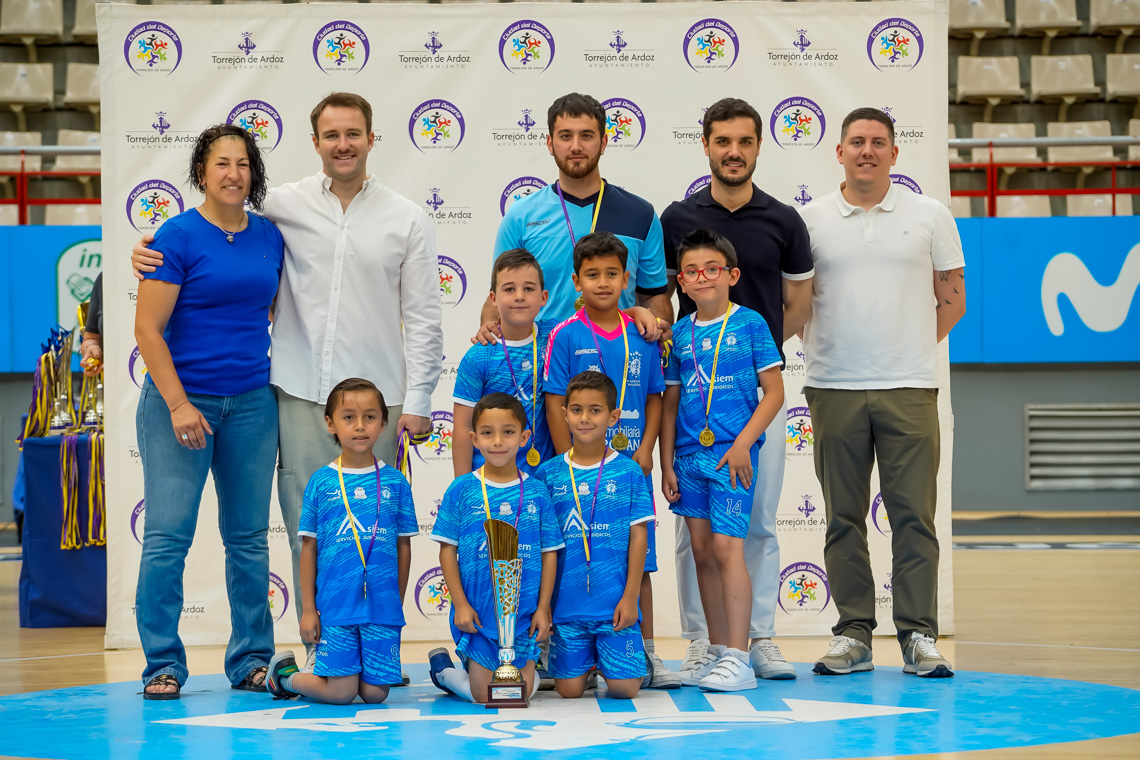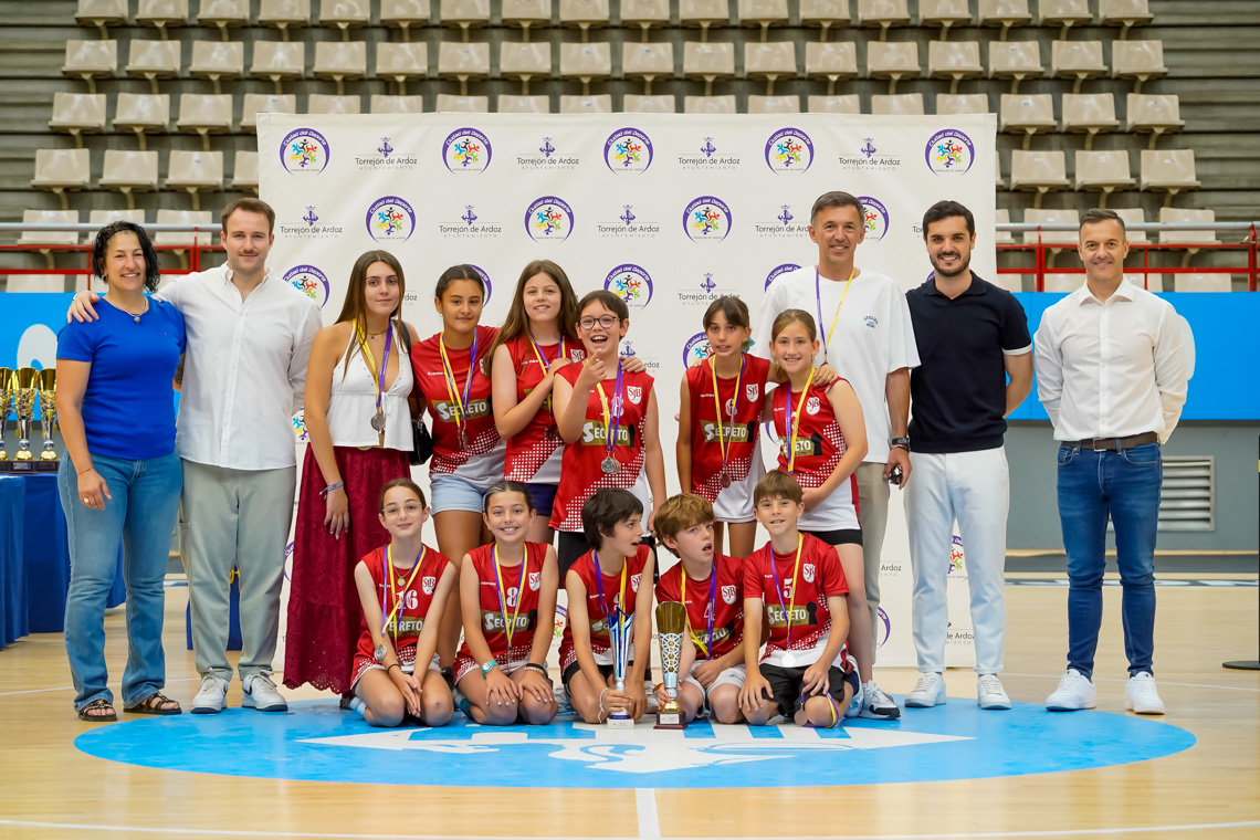 Torrejón de Ardoz, 13 de junio de 2025. El pasado domingo, en el Pabellón Jorge Garbajosa, tuvo lugar la entrega de premios a los mejores equipos de cada categoría en fútbol sala, fútbol 7, baloncesto y voleibol, y a los mejores jugadores, en el caso del tenis. El acto contó con la presencia del alcalde, Alejandro Navarro Prieto, y de otros miembros de la corporación municipal.