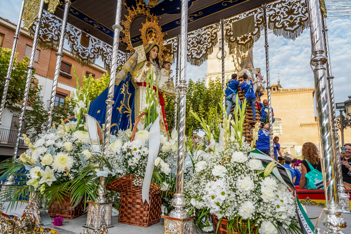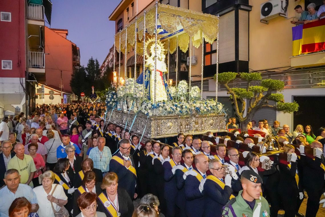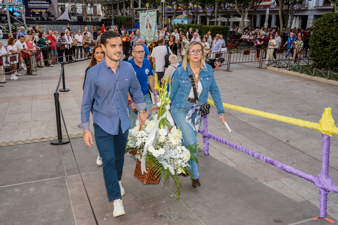 • No faltó a su cita con la patrona de Torrejón, una de las tradiciones más queridas en la ciudad como es la Ofrenda Floral a la Virgen del Rosario, que reunió a miles de vecinos llenos de devoción e ilusión que con sus claveles permitieron confeccionar un precioso manto que quedó expuesto durante todo el fin de semana