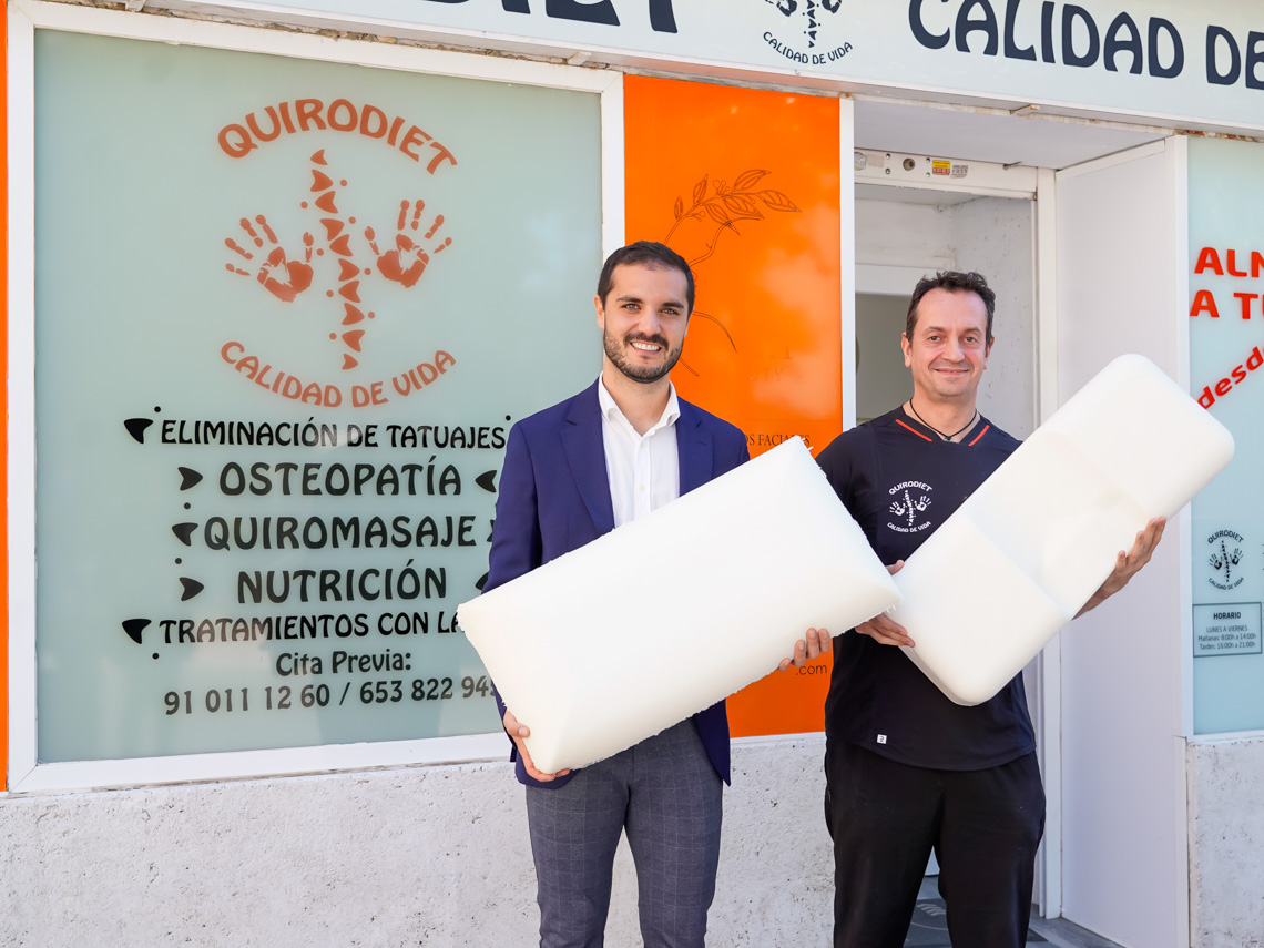 Quirodiet Calidad de Vida cuenta con un novedoso proyecto propio enfocado a mejorar el descanso mediante almohadas a medida. Esto les convierte en una clínica pionero e innovador en la medición de parámetros cervicales para la creación de una almohada a medida adaptada a cada persona. Un método que es inexistente hasta el momento. El alcalde, Alejandro Navarro Prieto visitó, junto a su gerente, José Luis Sevilla Herrera, sus instalaciones, situadas en el número 1 de la calle Ronda del Saliente. En este sentido, la presencia del regidor torrejonero se enmarca en el apoyo institucional que realiza el Gobierno local a las diferentes empresas ubicadas en el término municipal de Torrejón.