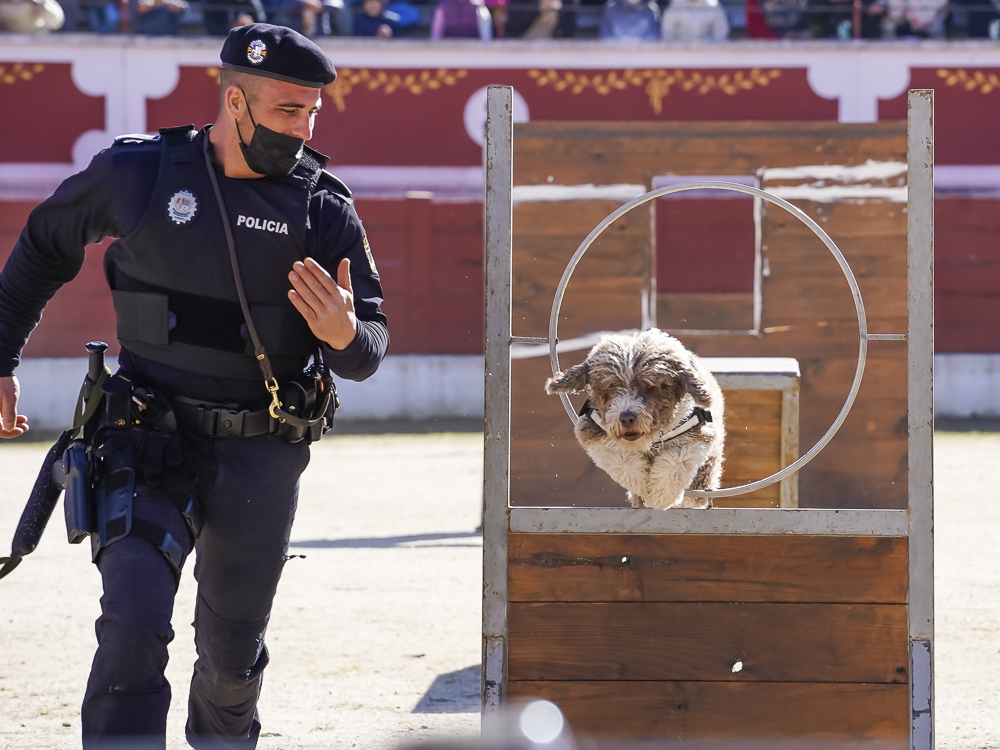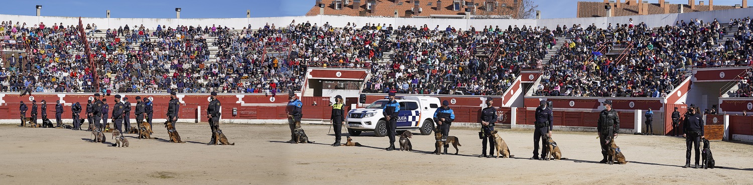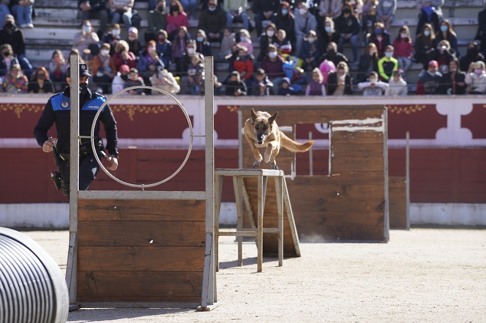 • Una de las iniciativas que resultó un gran éxito fue la Exhibición de la Unidad Canina de la Policía Local celebrada en la Plaza de Toros que tuvo un lleno histórico y que acogió un emocionante y muy aplaudido espectáculo con 25 perros y 28 agentes llegados desde diferentes ciudades de la Comunidad de Madrid