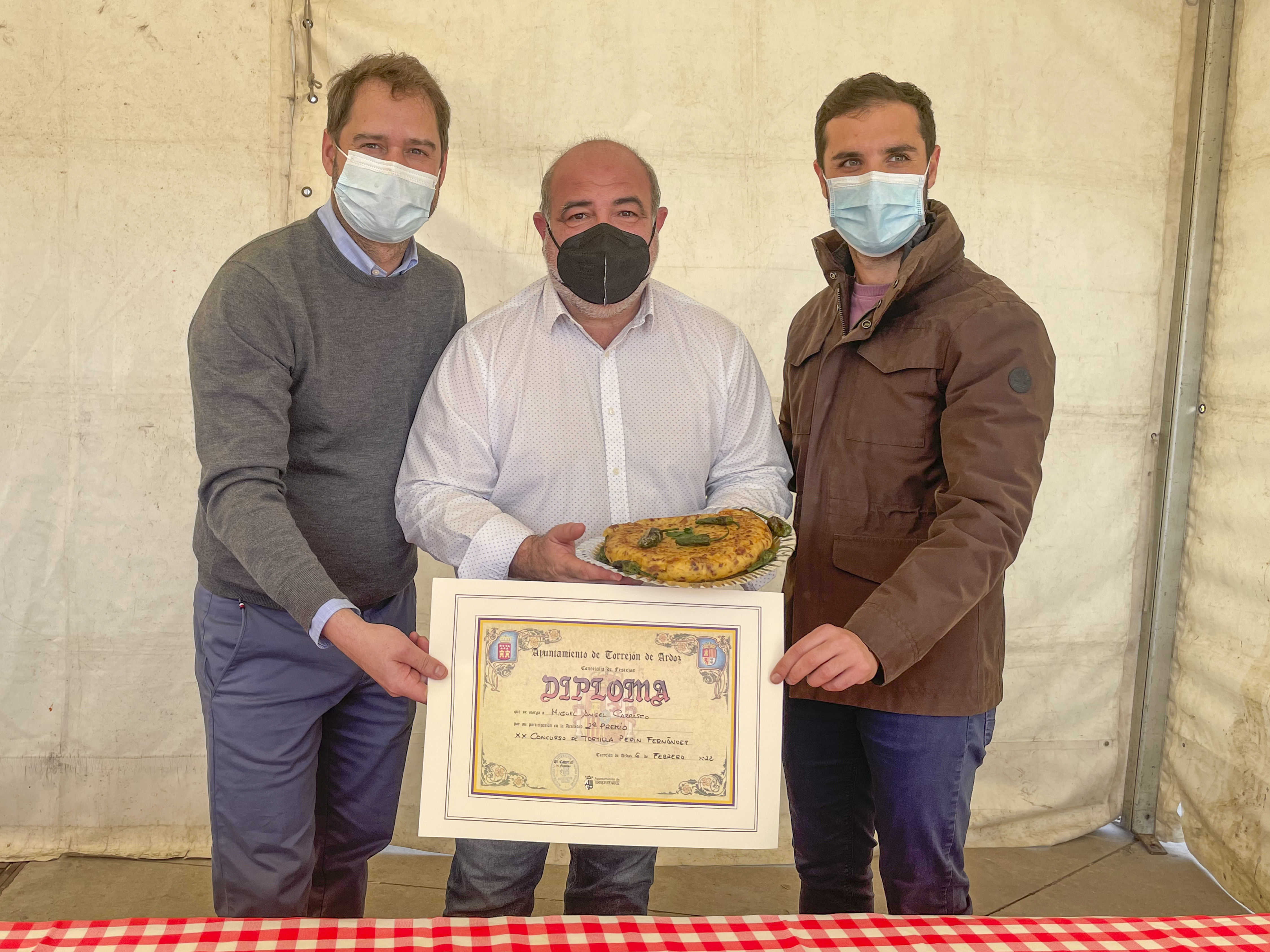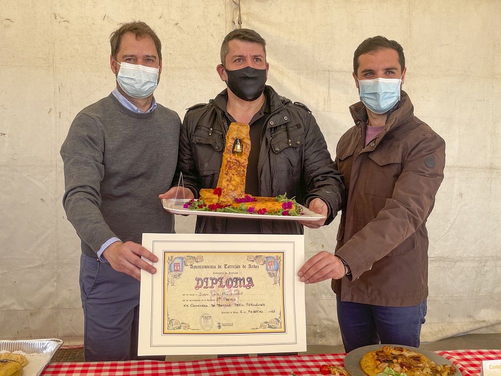 Torrejón de Ardoz, 7 de febrero de 2022. El Concurso de Tortilla Pepín Fernández contó con una elevada participación con 37 tortillas, llevándose el primer premio Carmen Salvago con “Tortilla a la madrileña”, el segundo galardón fue para Miguel Ángel Carrasco por “Tortilla de patata con codillo” y el tercer premio para Juan Luis Mingliore con “Campanario de tortilla”.