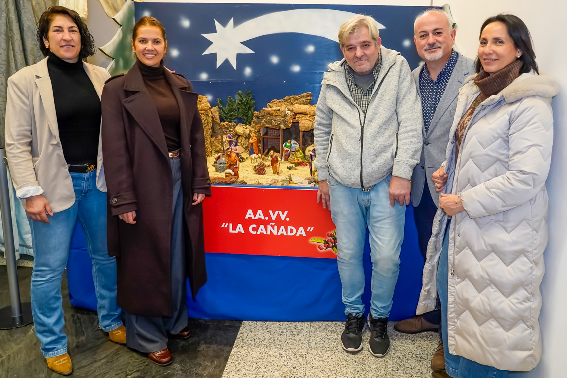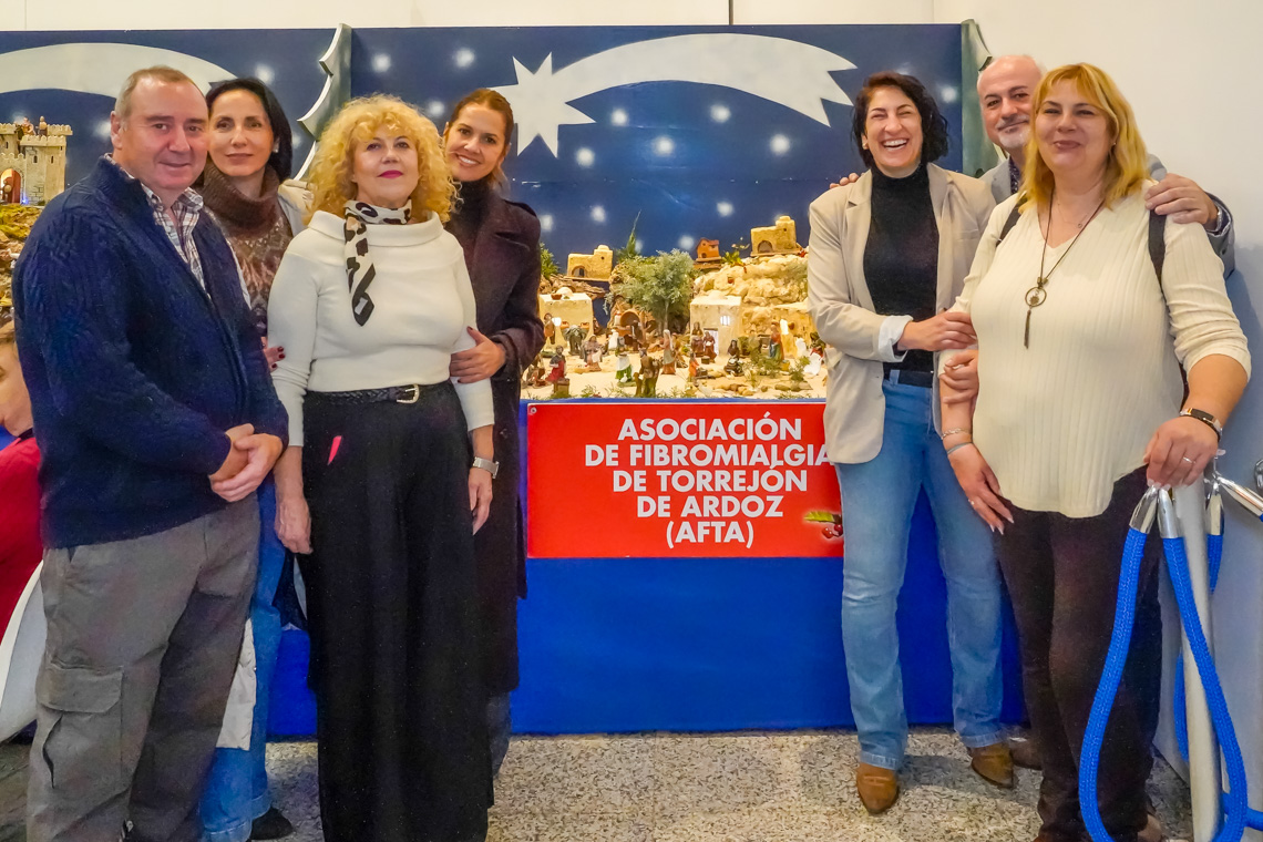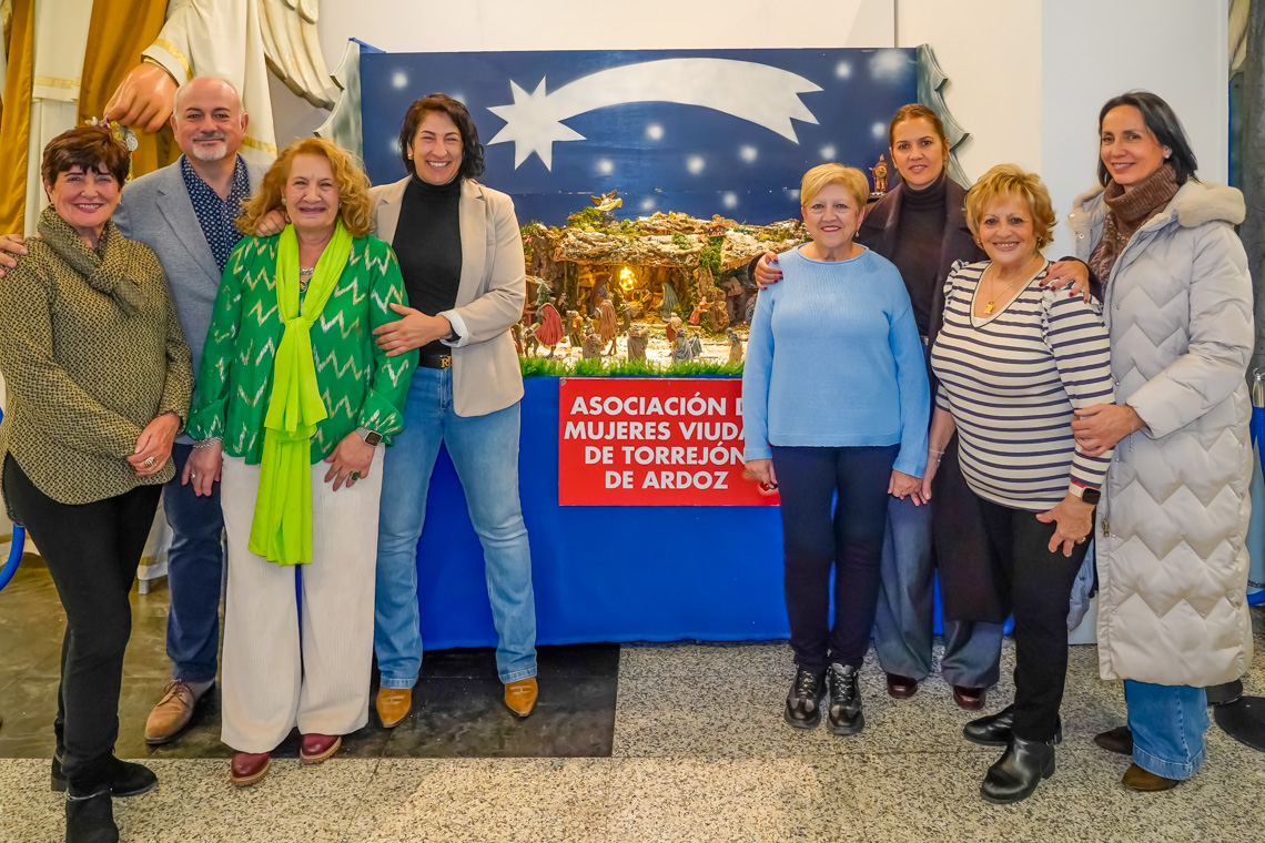 Torrejón de Ardoz, 1 de diciembre de 2025. La concejala de Festejos e Igualdad, María Eugenia Gil; el edil de Cultura, José Antonio Moreno; la concejala de Turismo, Mirian Gutiérrez y otros miembros de la corporación Municipal acudieron el pasado viernes a la inauguración de la muestra que reúne una amplia representación de belenes elaborados por estas asociaciones culturales, vecinales y sociales de la ciudad.