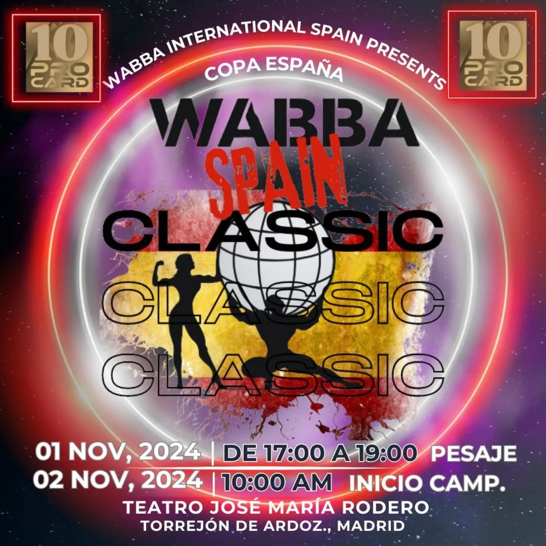 Torrejón de Ardoz, 30 de octubre de 2024. El “WABBA Spain Classic” es la Copa de España de bodybuilding amateur, una modalidad del culturismo. Participarán 160 atletas en 36 categorías y los ganadores absolutos lograrán una tarjeta profesional para poder competir en Mister y Miss Universo que tendrá lugar en Italia los días 16 y 17 de noviembre.