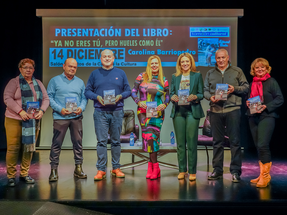 La Casa de la Cultura acogió el pasado 14 de diciembre la presentación de la primera novela publicada y finalista del XVIII Premio de Novela Onuba 2022 de la torrejonera Carolina Barriopedro, “Ya no eres tú, pero hueles como él”, una intensa y emotiva historia en la que la autora cuenta la dura experiencia que vivió tras diagnosticarle a su marido un cáncer y decidir que moriría en casa. En el acto, que contó con la presencia del segundo teniente de alcalde, Valeriano Díaz; el concejal de Cultura, José Antonio Moreno; el edil de Deportes, José Miguel Martín Criado; la concejala de Mayores, Ana Verónica González; y la edil del Gobierno, Ángeles Jiménez, la escritora comentó su novela, hubo un turno de preguntas y se terminó con la firma de ejemplares a los presentes.
