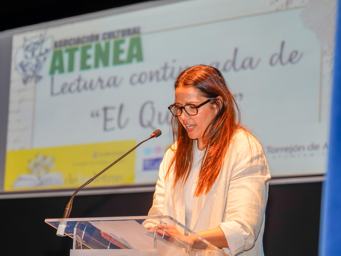 El acto se ha iniciado esta mañana en la Casa de la Cultura con la lectura de un pasaje de la obra maestra de Cervantes por parte de Petra Manzaneque, presidenta de la asociación Atenea, y a la que se han sumado a continuación la 2ª teniente de alcalde y concejala de Igualdad y Festejos, María Eugenia Gil Blázquez, el concejal de Cultura, José Antonio Moreno, otros concejales de la Corporación municipal y ciudadanos a título particular.