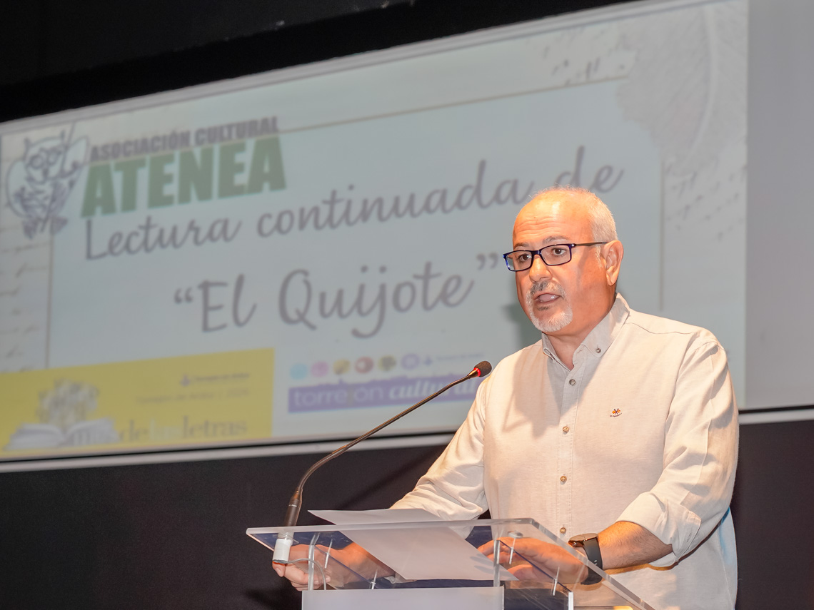 Torrejón de Ardoz se sumerge en un mundo de sueños y valentía rindiendo homenaje a Miguel de Cervantes con la tradicional lectura de las aventuras del ingenioso caballero Don Quijote y su fiel escudero Sancho Panza, organizada por la Asociación Cultural Atenea. La cita se ha celebrado esta mañana en la Casa de la Cultura con motivo de la conmemoración del Día Mundial del Libro, que está teniendo lugar hoy, 23 de abril, y se trata de uno de los actos destacados dentro del Mes de las Letras, que se extenderá hasta el 6 de mayo, y que tienen a la lectura como gran protagonista con el objetivo de fomentarla entre todos los torrejoneros.