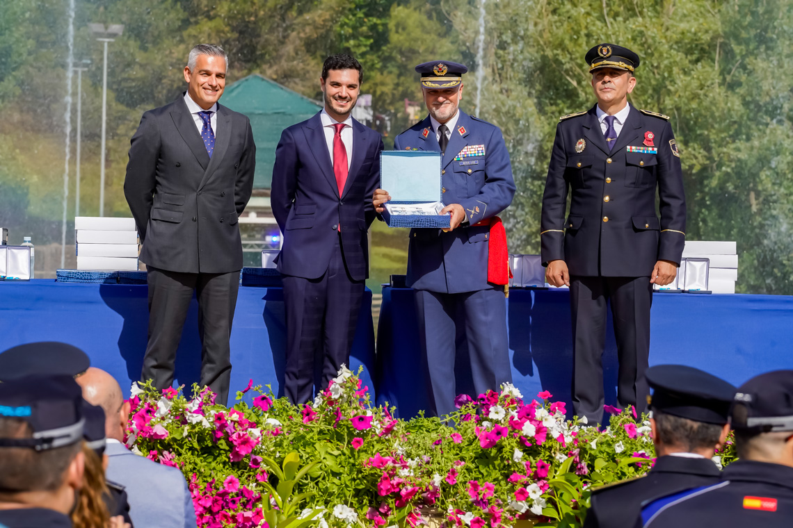 • Además, se entregó un reconocimiento a los policías que tuvieron actuaciones muy destacas el pasado año, recibiendo la Cruz al Mérito Profesional Distintivo Blanco, Álvaro Martinez Garcia, agente de la Policía Local, por su destacada intervención cuando estando fuera de servicio mientras paseaba observó una tentativa de homicidio y realizó una persecución junto a su perro en la que lograron detener al autor del delito. También recibió este reconocimiento Manuel Carballo Diaz, subinspector de la Policía Local, y Álvaro Barreiro Ortiz, agente de la Policía Local, que evitaron el suicidio de una persona que portaba un cuchillo con el que amenazaba con autolesionarse. En un momento de descuido lograron reducir a la persona quitándole el arma que portaba