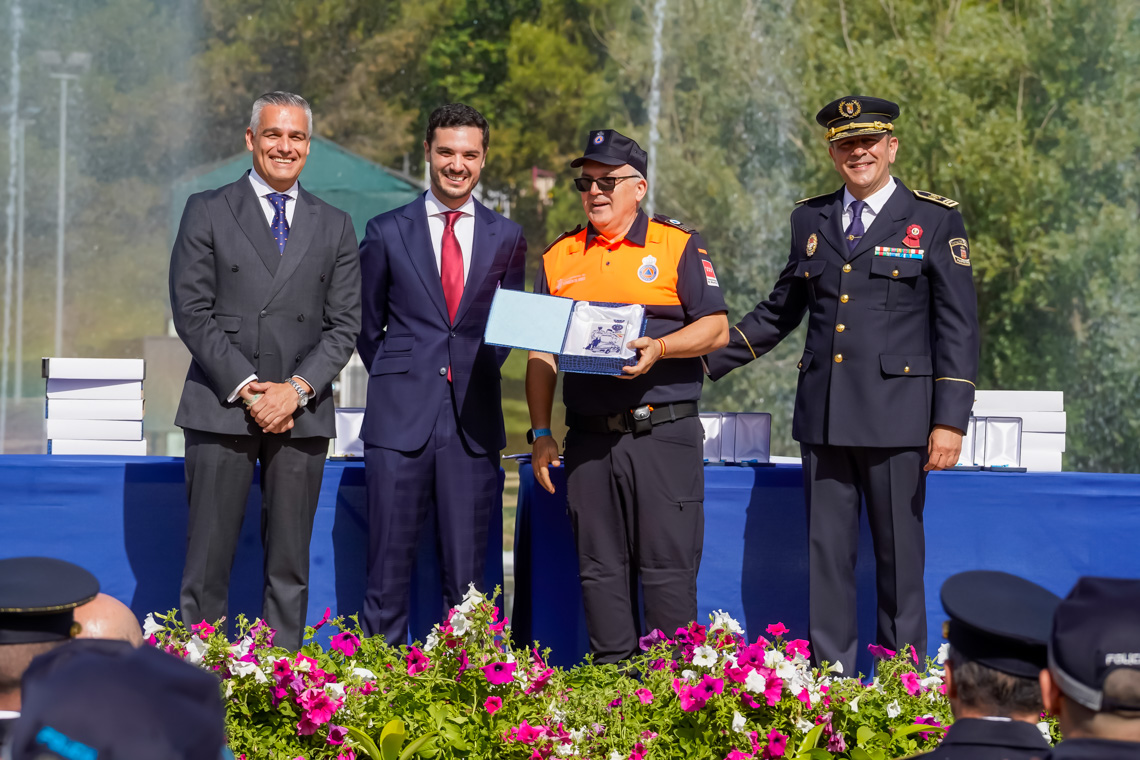 El alcalde destacó “el gran trabajo que nuestra Policía Local realizó ayudando a muchos ciudadanos afectados por la DANA en Valencia y que se vio reconocido por alcaldesa de Valencia, María José Catalá que, en nombre de la ciudad del Turia, otorgó la Cruz al Mérito Profesional a la Policía Local de Torrejón de Ardoz por su ayuda en esos momentos tan difíciles”. A los policías que acudieron de manera voluntaria en los contingentes organizados por nuestra Jefatura, se les entregó una réplica de la medalla Cruz al Mérito Profesional de la ciudad de Valencia que La Policía Local de Torrejón de Ardoz recibió por su ayuda durante la DANA.