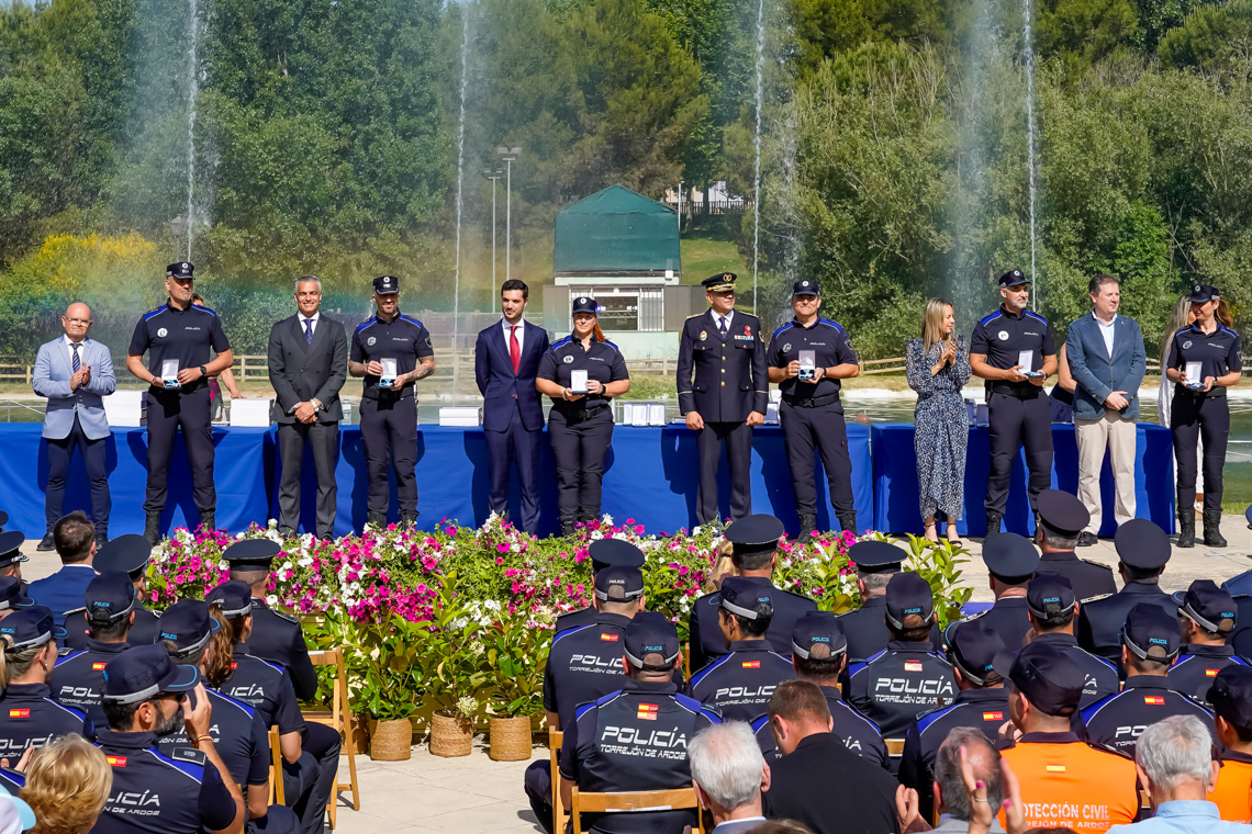 El Ayuntamiento de Torrejón de Ardoz celebró el Día de la Policía con un emotivo acto de reconocimiento a la labor de los agentes y cuerpos de seguridad, presidido por el alcalde, Alejandro Navarro, y donde también se distinguió a Esperanza Aguirre por su colaboración con el Cuerpo de la Policía Local al crear en 2004 la BESCAM. El Día de la Policía de Torrejón de Ardoz 2025 San Juan Bautista se celebró, el pasado 31 de mayo, en el incomparable marco del Parque Europa.
