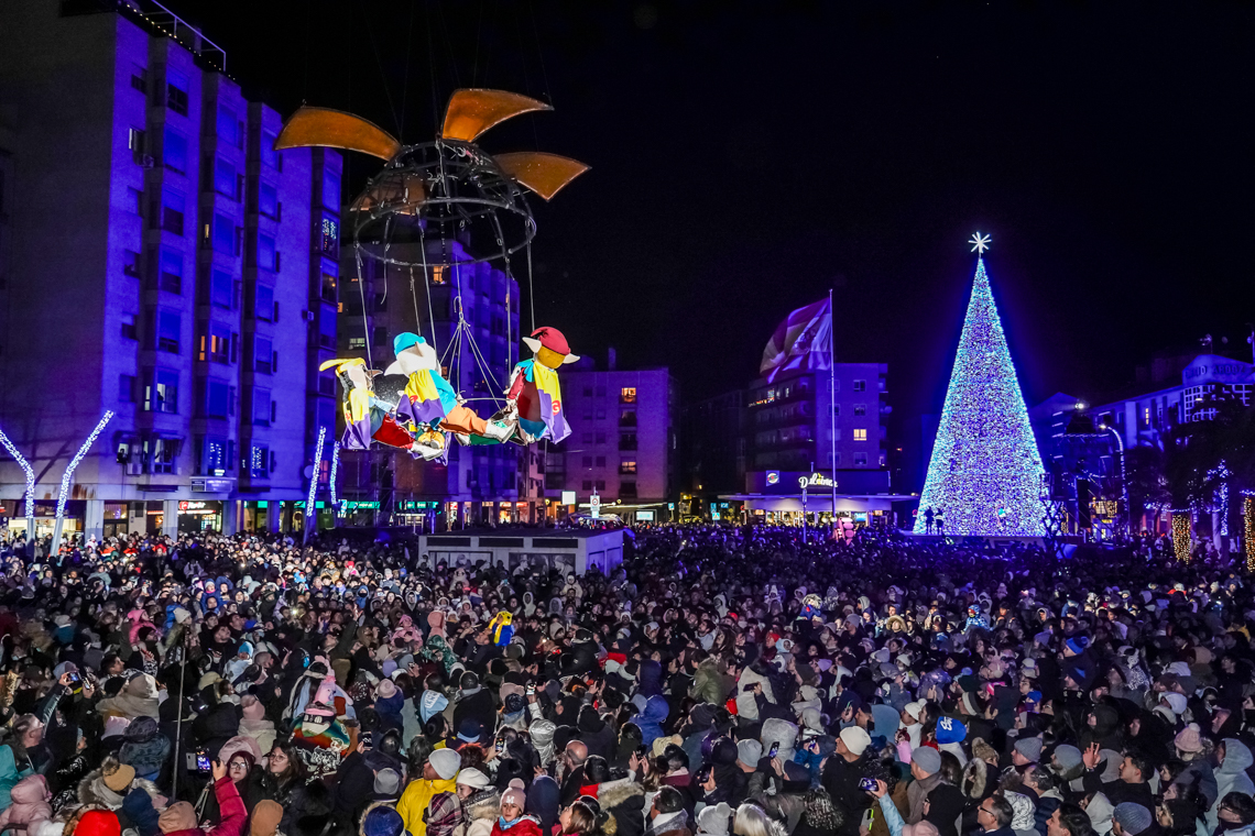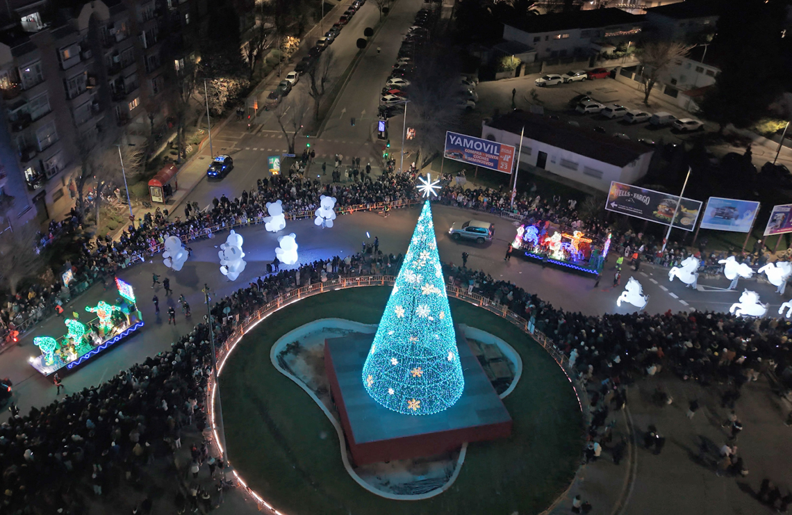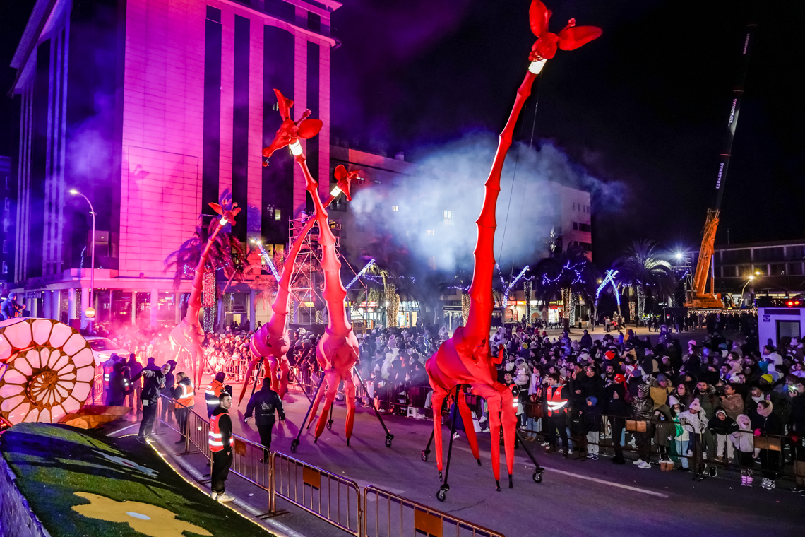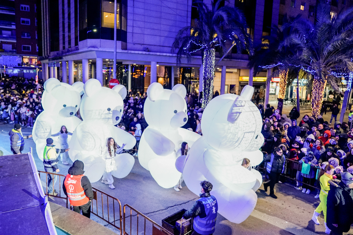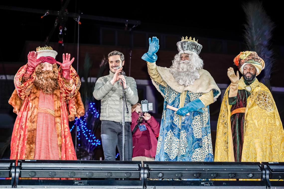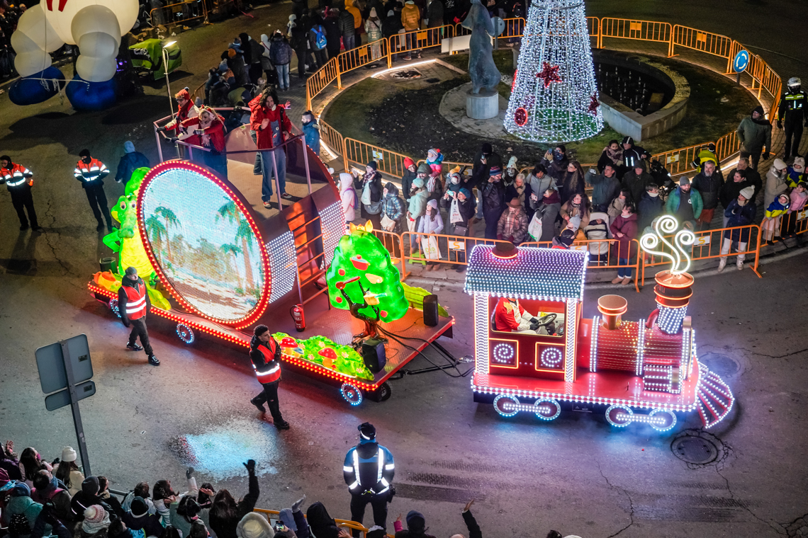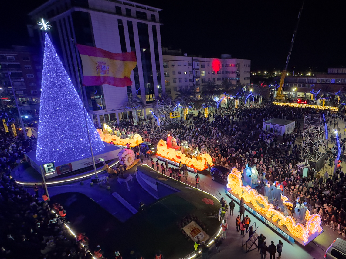 • La noche concluyó en una abarrotada Plaza España que acogió los emotivos saludos del alcalde, Alejandro Navarro Prieto, y de Sus Majestades los Reyes Magos, Melchor, Gaspar y Baltasar, y el gran espectáculo final a cargo de la prestigiosa compañía internacional Grupo Puja!, con su show aéreo “Los Superguachis”, poniendo el broche de oro a una jornada mágica.