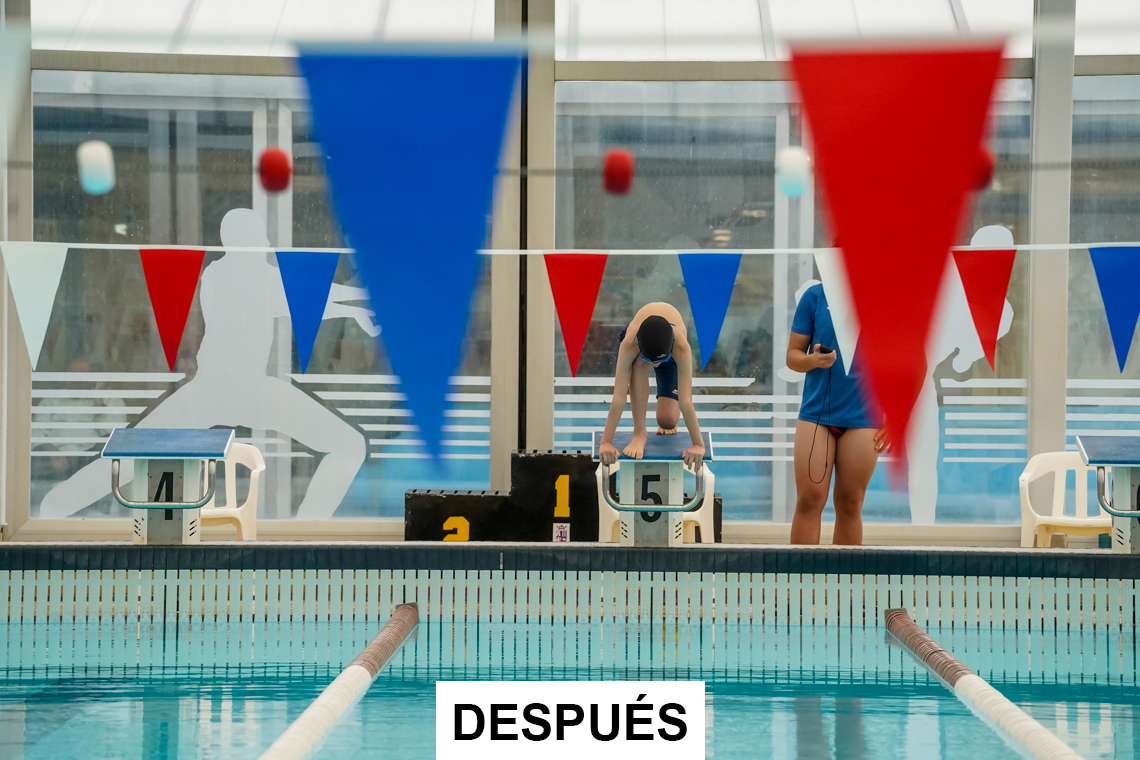 Nuevas gradas modulares en la piscina cubierta C.D. Juan Antonio Samaranch. Sustitución de puertas de emergencia de la piscina, solado y mejora zona de merenderos en piscina de Olas.