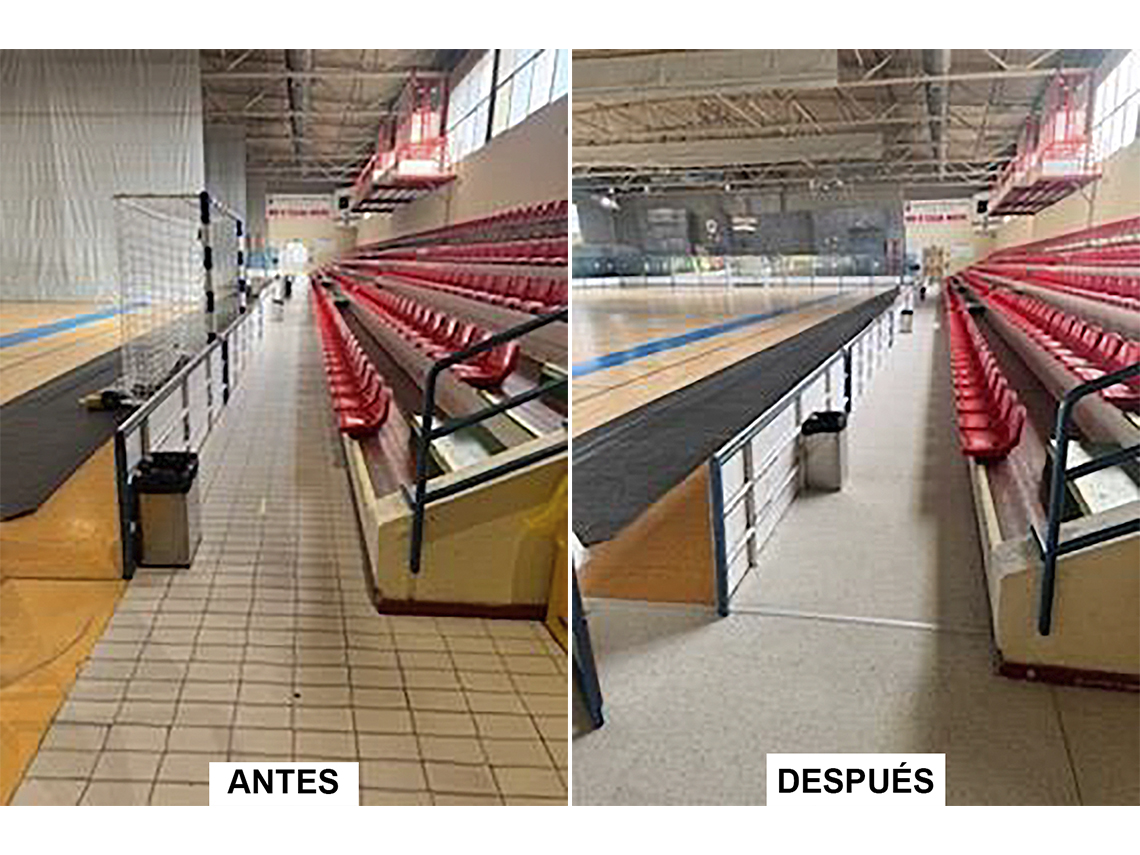 Se ha cambiado todo el suelo de acceso a gradas y vestuarios en el Pabellón Javi Limones