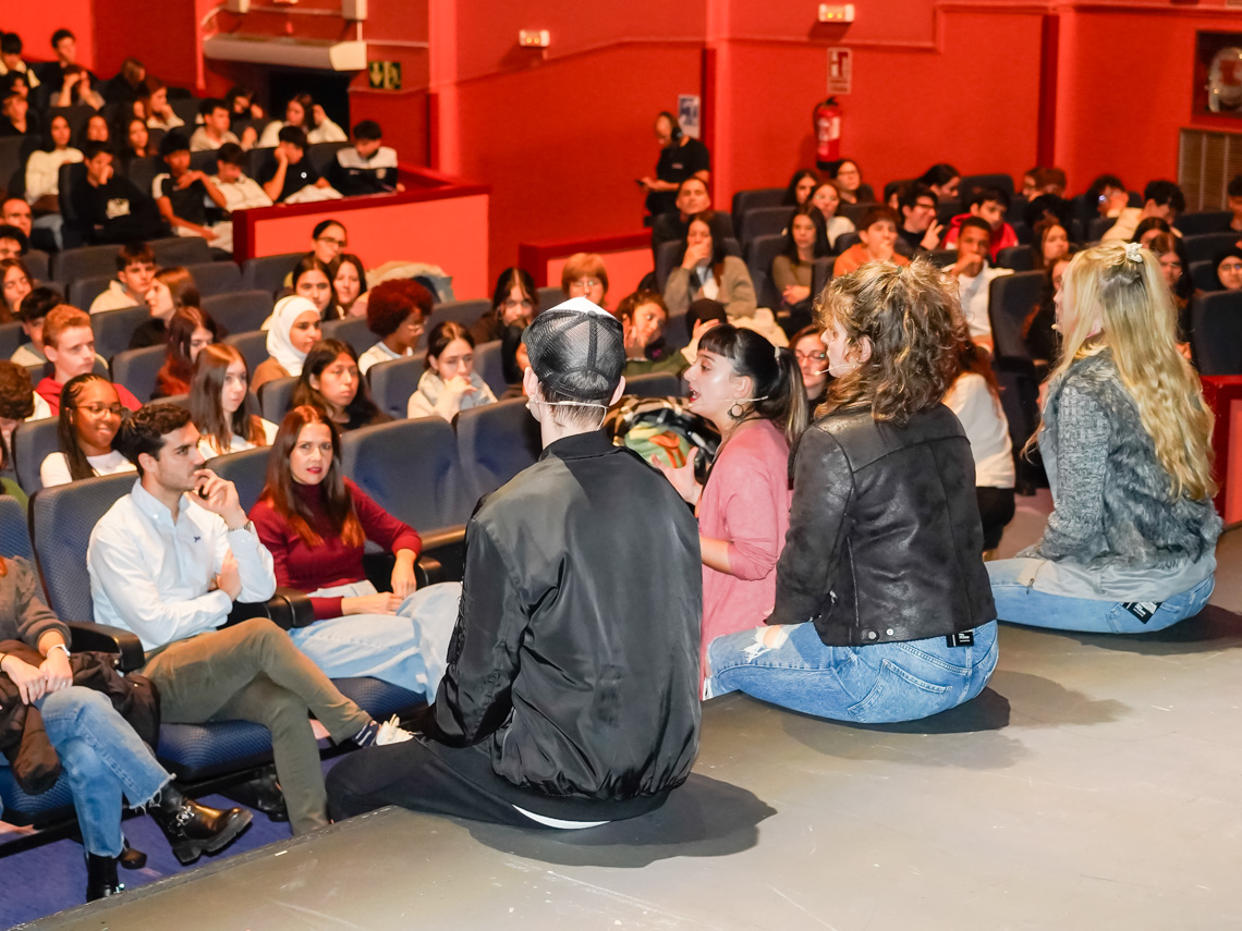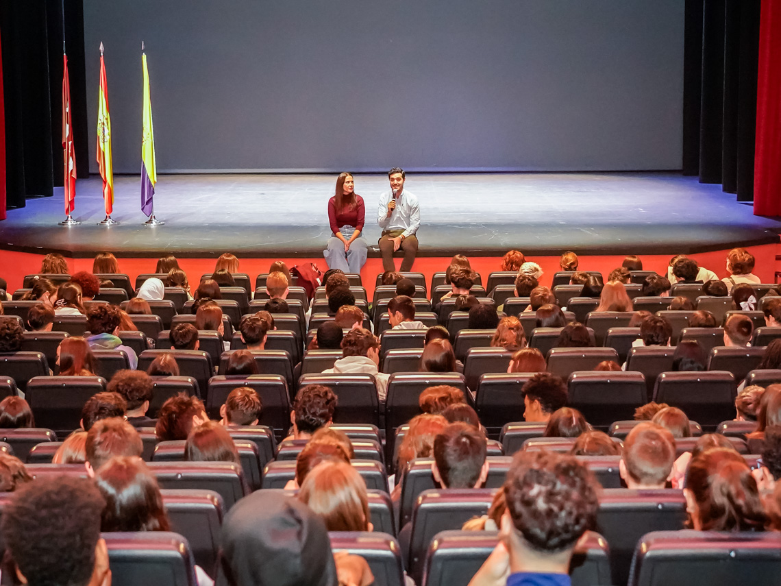 Torrejón de Ardoz, 25 de noviembre de 2024. También hoy 25 de noviembre, en dos sesiones, en el Teatro Municipal José María Rodero, se ha realizado el Acto Institucional dirigido al alumnado de 4º de la ESO de los institutos de la ciudad, en el que ha tenido lugar la representación teatral “Déjate llevar” y que ha contado y que ha contado con la presencia del alcalde, Alejandro Navarro Prieto, y de la concejala de Igualdad y Festejos, María Eugenia Gil.