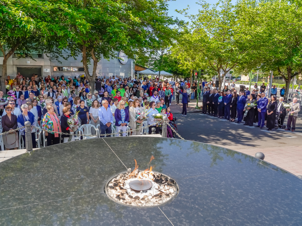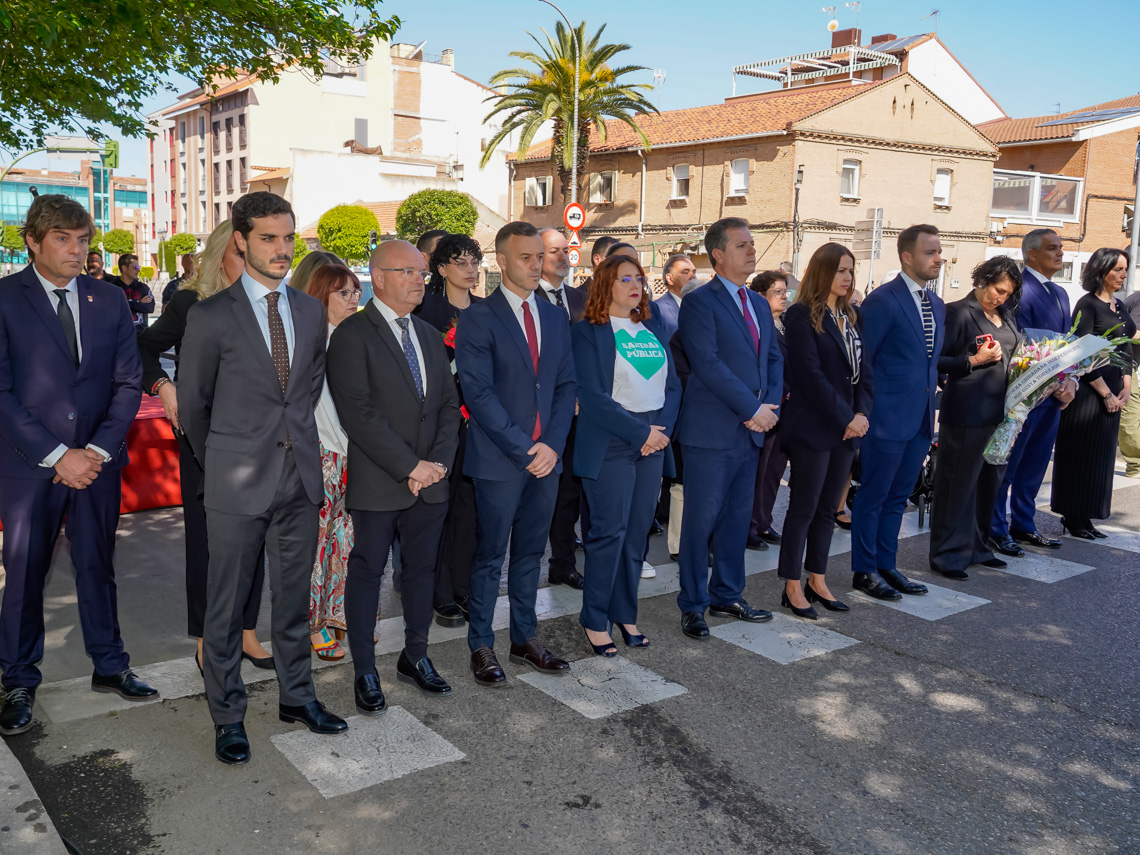 Torrejón de Ardoz, 19 de mayo de 2025. Un minuto de silencio, la lectura del poema “El Viaje Definitivo”, de Juan Ramón Jiménez, por parte de la Asociación Tertulia Poética El Desván, las ofrendas florales en nombre de la ciudad de Torrejón de Ardoz, realizadas por el alcalde, Alejandro Navarro y los portavoces de los grupos políticos representados en el Ayuntamiento, entre otras autoridades, los familiares de las víctimas, las asociaciones de la localidad y los vecinos fueron los protagonistas de este acto en el que también sonaron algunas de las canciones más representativas de la pandemia.
