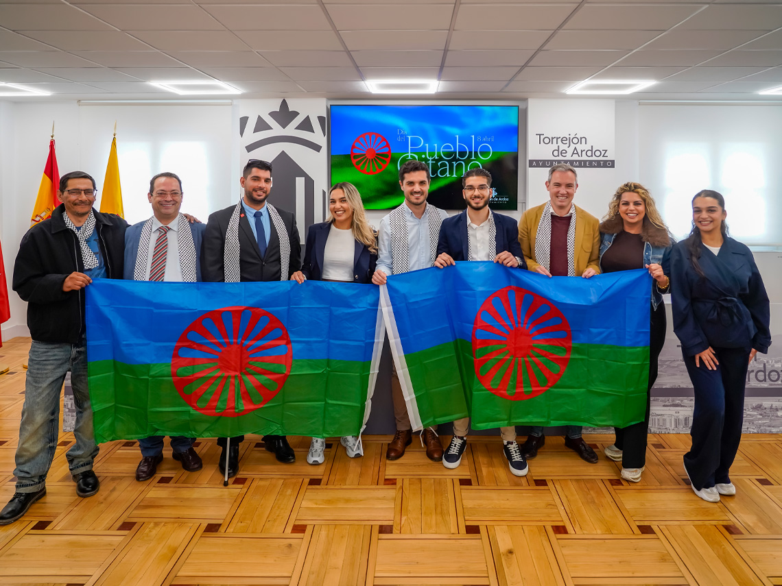 Torrejón de Ardoz se suma a la conmemoración del Día Internacional del Pueblo Gitano que está teniendo lugar hoy, 8 de abril, con el objetivo de reconocer el papel que este colectivo de la población tiene y ha tenido en la ciudad. El alcalde, Alejandro Navarro Prieto, acompañó a representantes del pueblo gitano en la ciudad de las entidades sociales Progreso Gitano y la Asociación Romaní por la Educación, Inclusión y Desarrollo (REID) en Torrejón de Ardoz, en la presentación de las actividades que tendrán lugar con motivo de esta jornada, entre las que destaca la iluminación de la fachada del Ayuntamiento la tarde-noche de hoy miércoles, 8 de abril, con el objetivo de dar visibilidad a esta destacada efeméride.