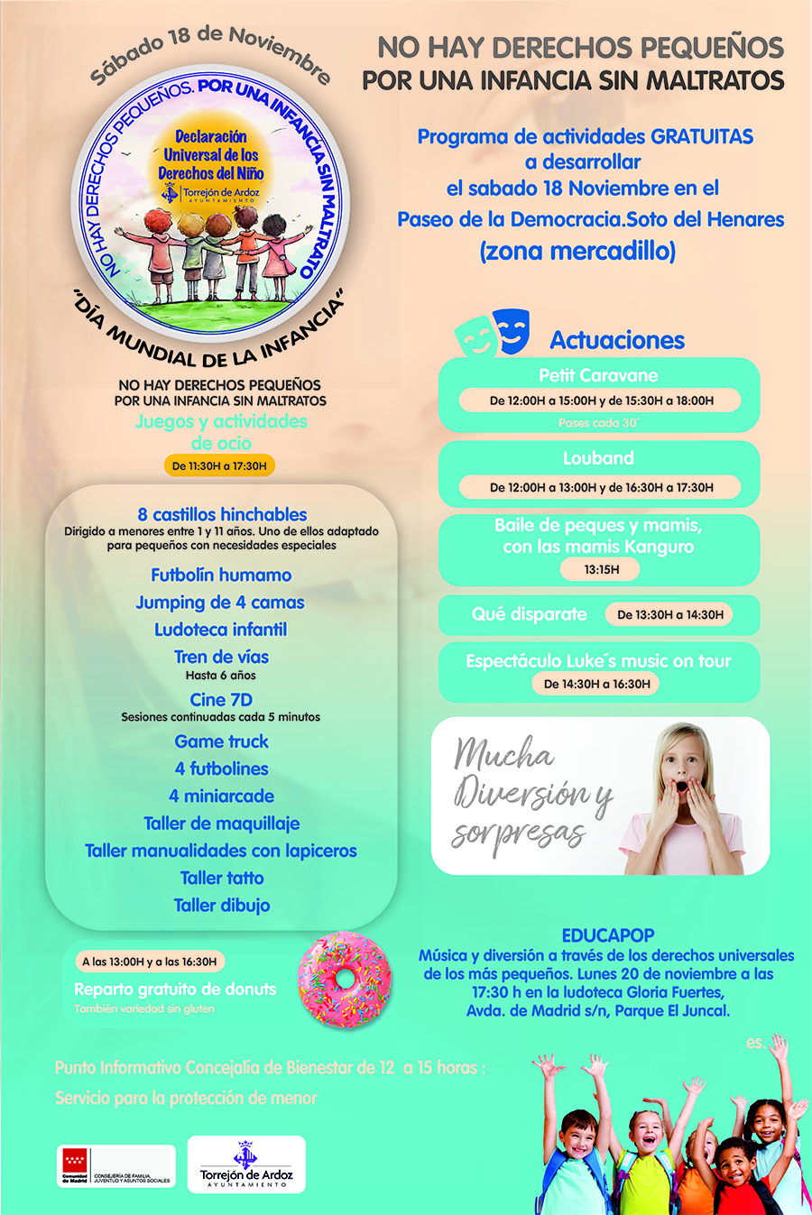 El Ayuntamiento cuenta con dispositivos específicos de atención a la infancia y la familia en riesgo social, con profesionales que abordan los casos relacionados con el maltrato hacia menores y se realiza una intervención integral con todos los miembros de la familia. El objetivo fundamental de este programa es proteger a los niños y niñas, mientras se trabaja intensamente para establecer unas relaciones familiares saludables y un cuidado adecuado. El Ayuntamiento de Torrejón de Ardoz cuenta para ello con un Plan Integral de lucha contra la Violencia hacia los niños, niñas y adolescentes, iniciado en 2022 con proyectos de intervención que contemplan actuaciones ambiciosas en materia de: