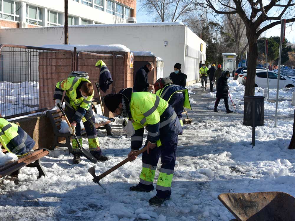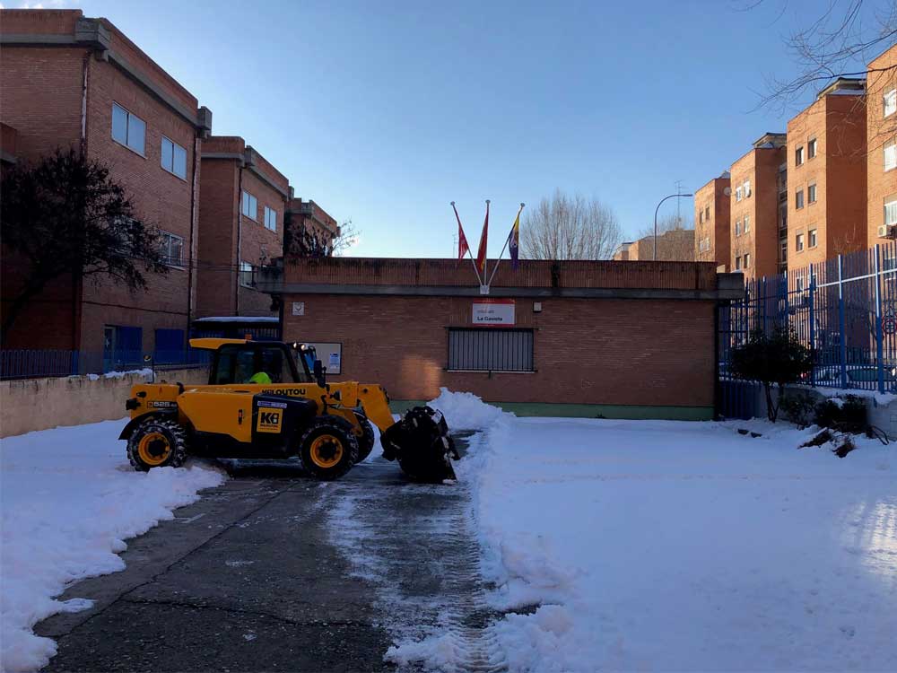 El Ayuntamiento de Torrejón de Ardoz está despejando de hielo y nieve los accesos exteriores a los colegios y escuelas infantiles públicas y creando caminos en el interior ante el inminente comienzo de las clases, previsto para el miércoles 20 de enero. Unas labores iniciadas desde hace días y que se prolongarán durante este fin de semana. Además, se están habilitando los accesos exteriores a los institutos de la ciudad, al ser el interior de los mismos competencia de la Comunidad de Madrid.