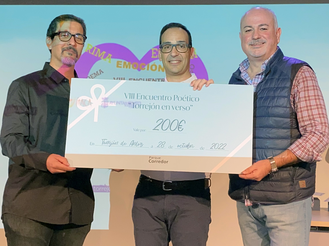Este fin de semana se ha celebrado en el Centro Cultural Las Fronteras, el VIII Encuentro Poético “Torrejón en Verso” que organiza la Tertulia Poética “Desván”. Dentro de este encuentro cultural se entregaron los galardones del Certamen Nacional de Poesía “Fernando Calvo” que está patrocinado por el Ayuntamiento de Torrejón de Ardoz y el Centro Comercial Parque Corredor. Alexis López Vidal por el poema “El Nombre de las horas” obtuvo el primer premio de del encuentro poético que llega a su décima edición”.